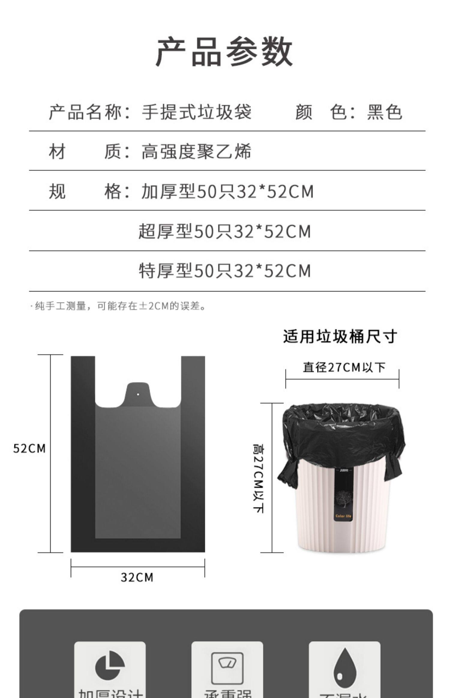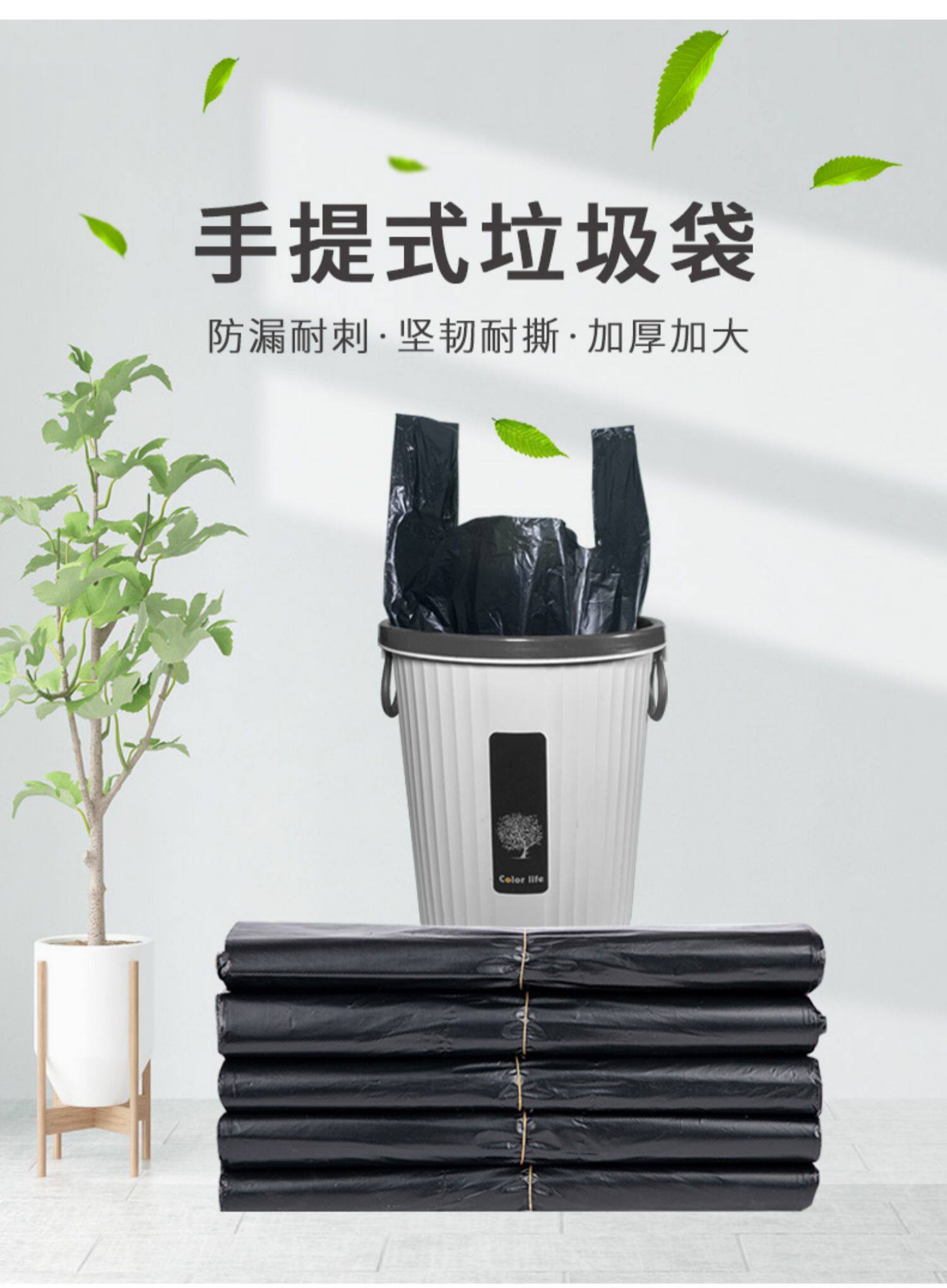Портативный большой мусорный мешок, черный пластиковый жилет для коммерческого использования, увеличенная толщина