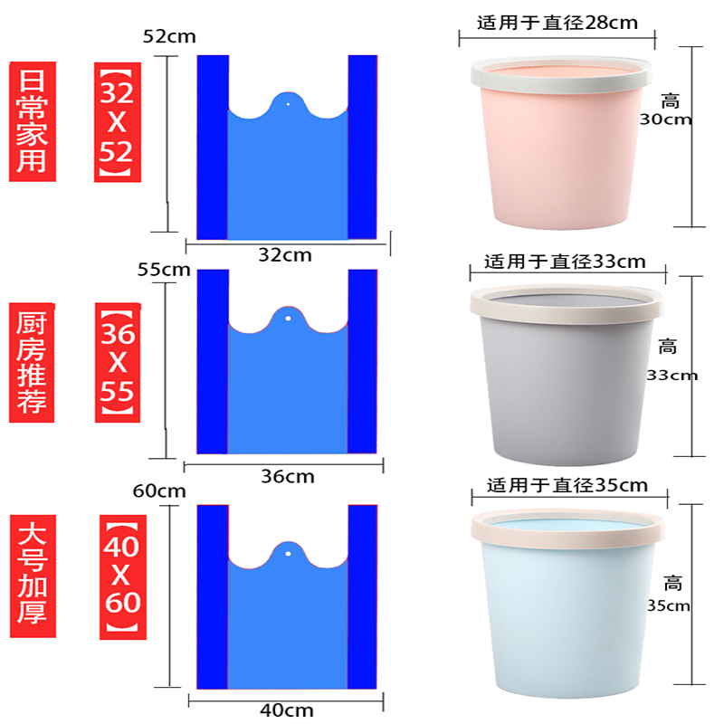 Синий портативный пластиковый одноразовый большой мусорный мешок для домашнего использования, увеличенная толщина