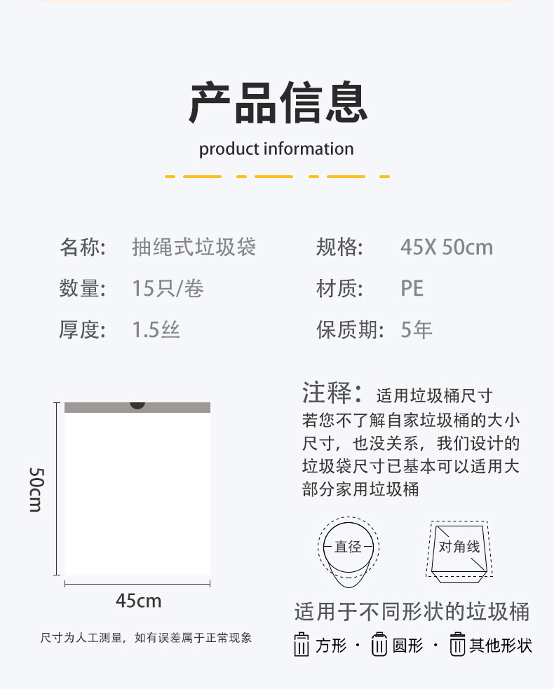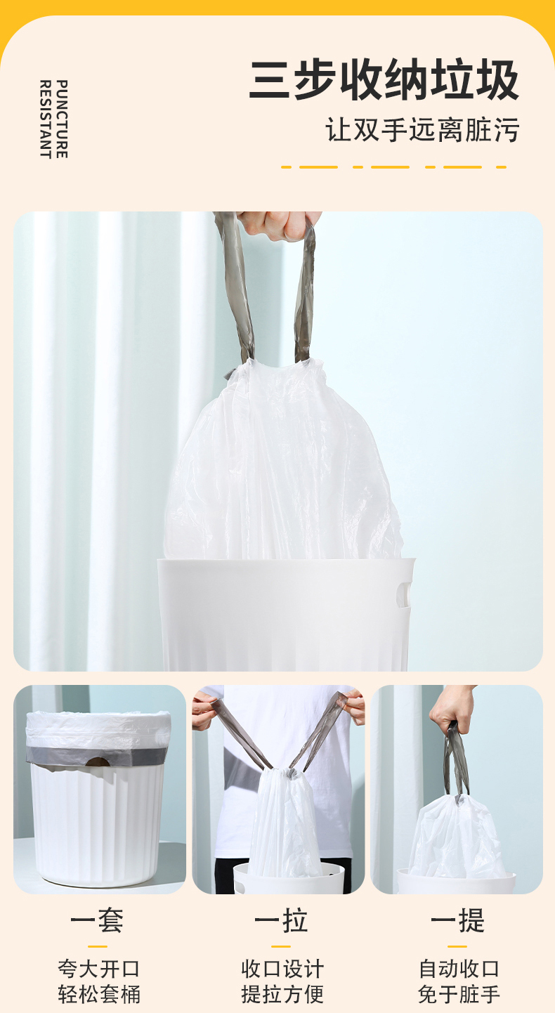 Портативный большой одноразовый пластиковый гигиенический мусорный мешок для домашнего использования для школьников, на шнурках, увеличенная толщина