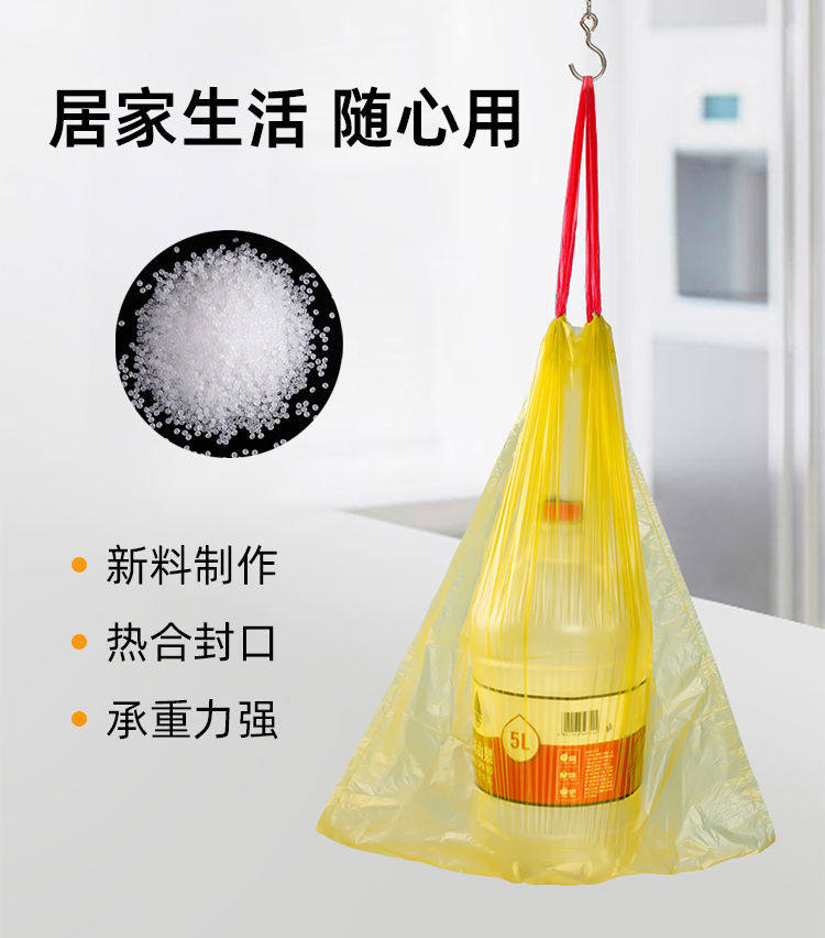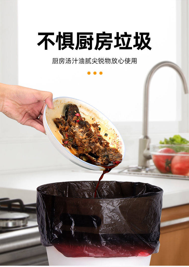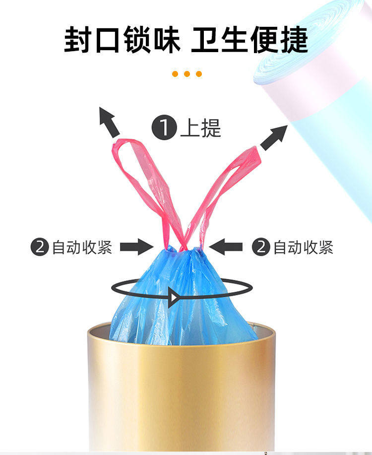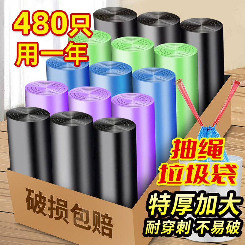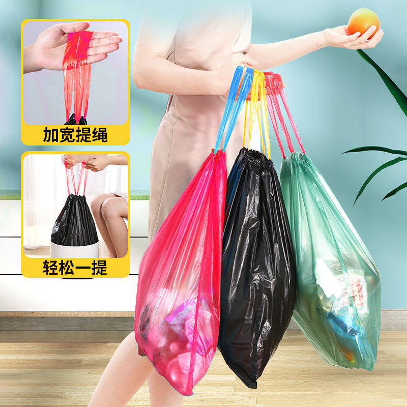 Черный портативный одноразовый пластиковый мусорный мешок, увеличенная толщина, на шнурках