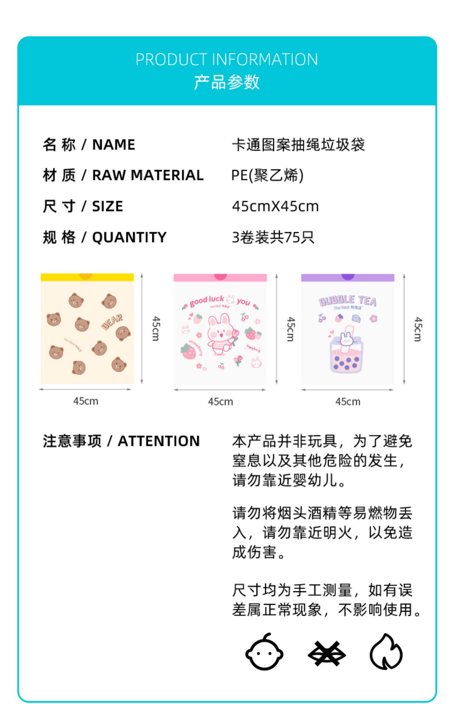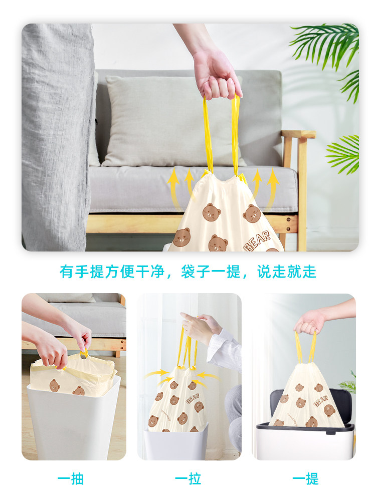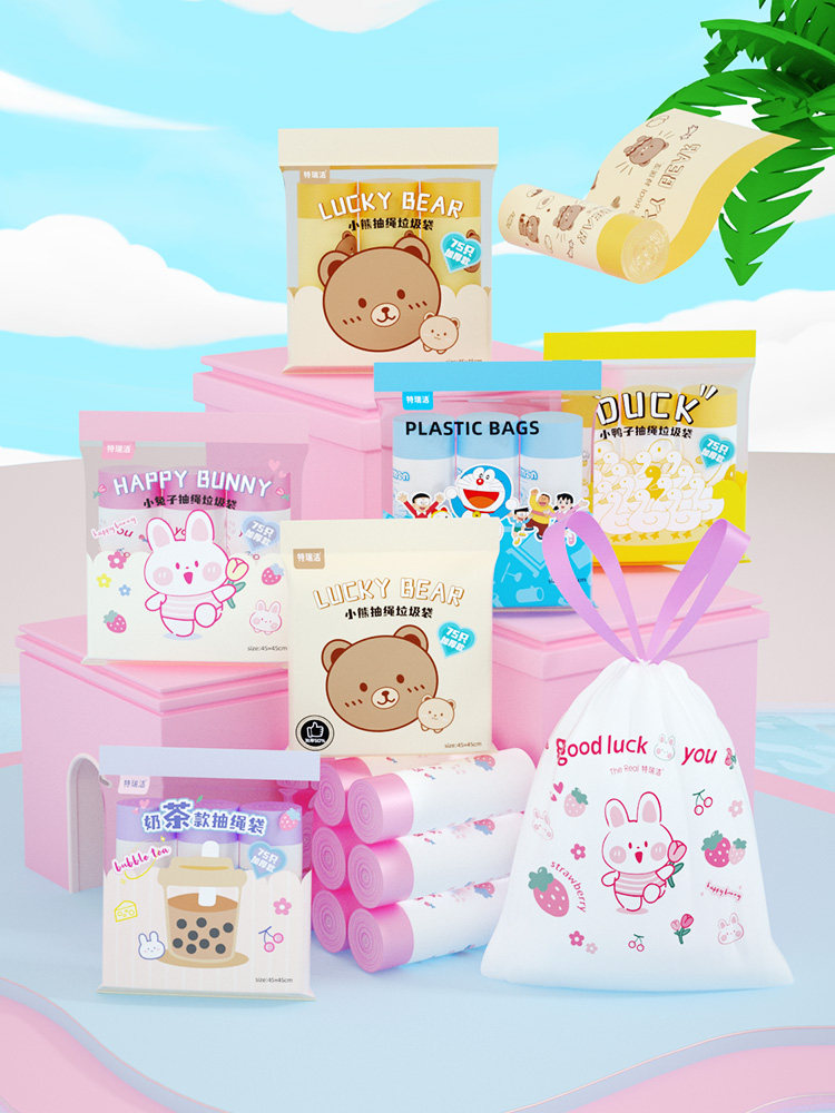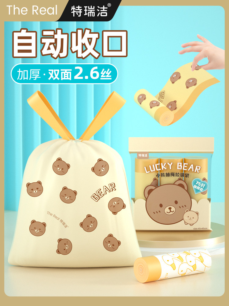 特瑞洁 Портативный милый пластиковый мусорный мешок, увеличенная толщина, на шнурках