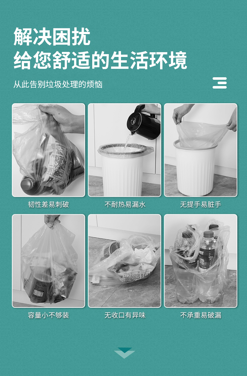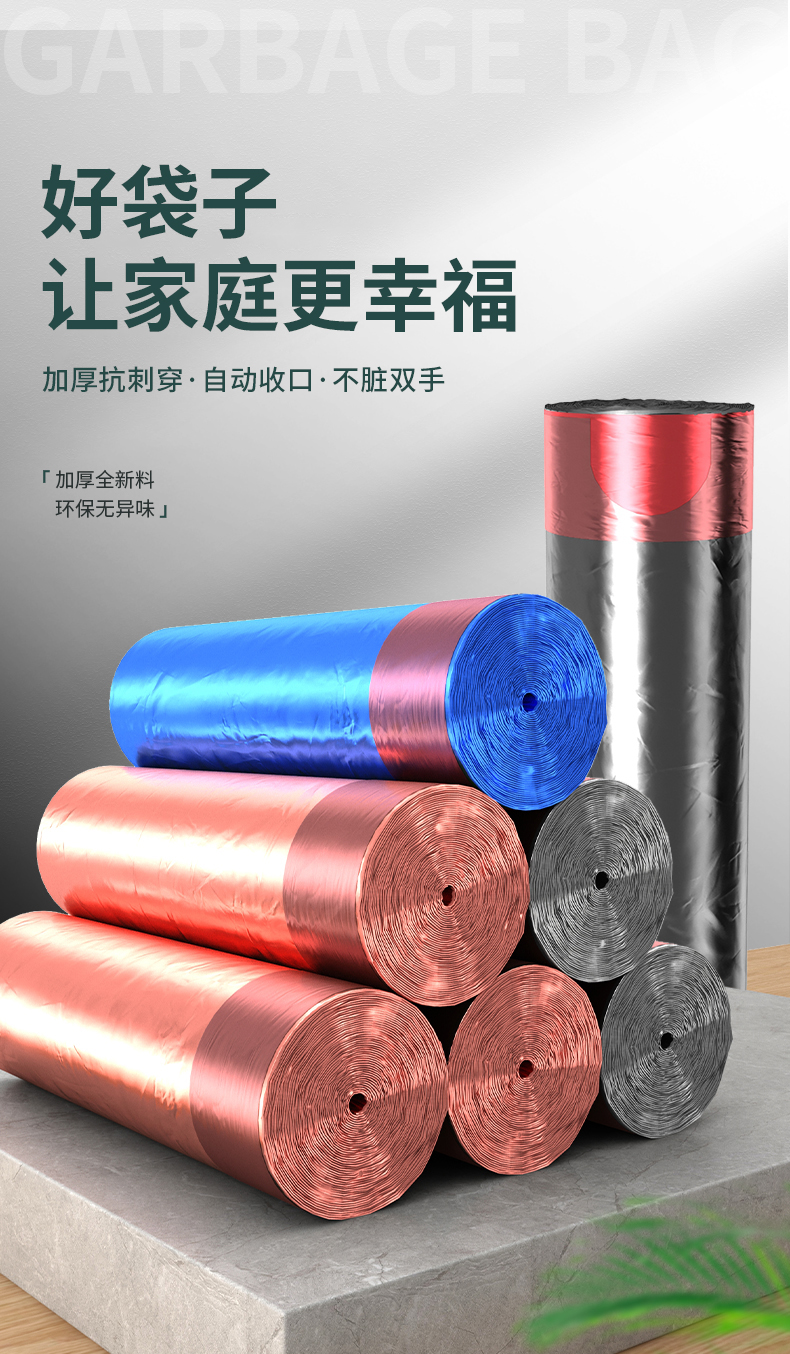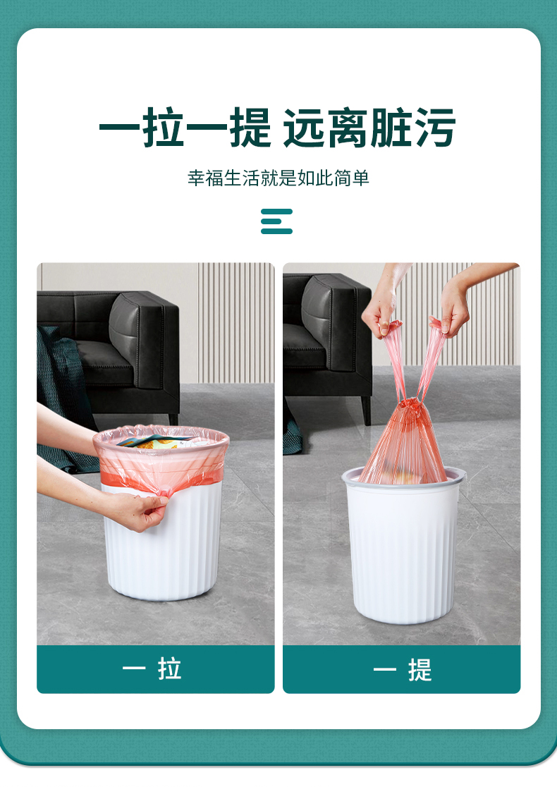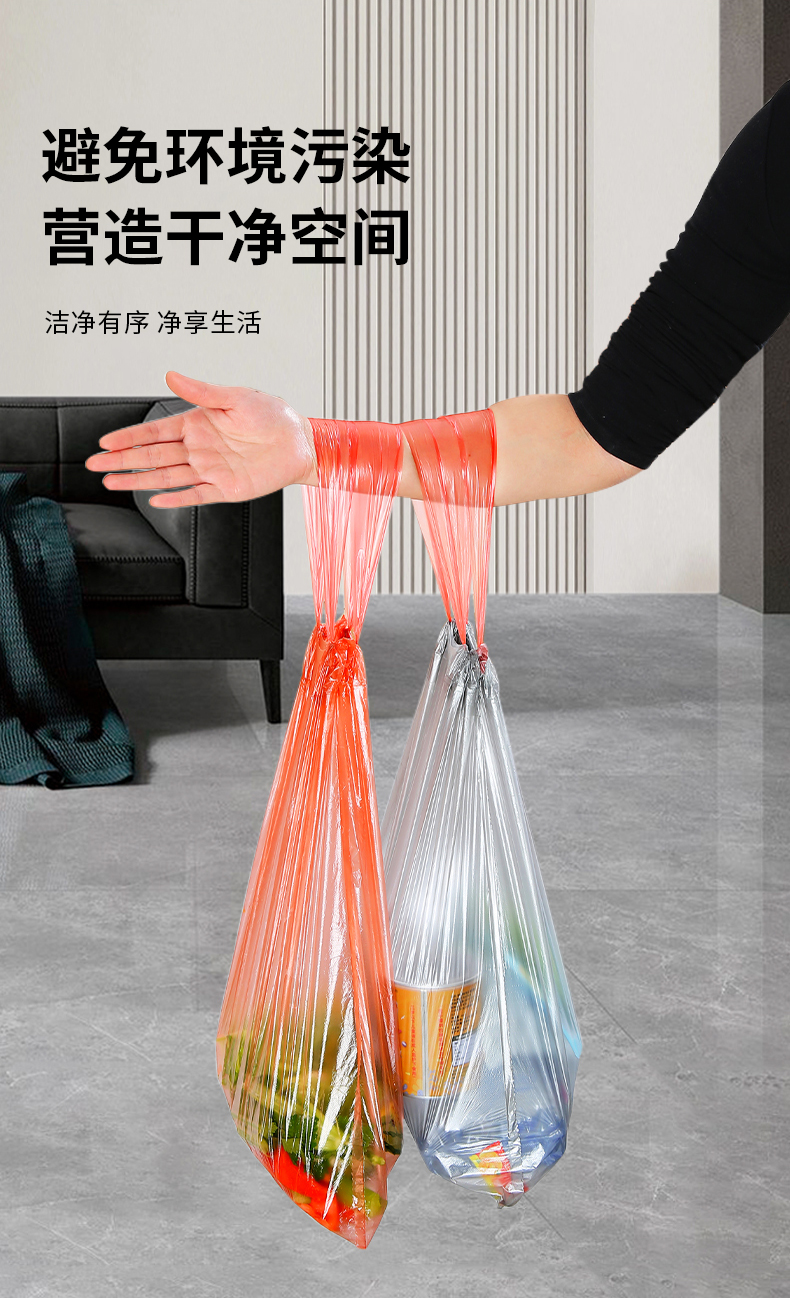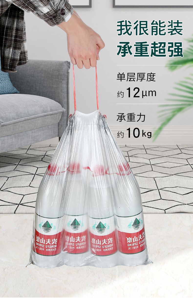 Портативный большой мусорный мешок для домашнего использования, увеличенная толщина, на шнурках