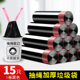 Портативный большой черный пластиковый мусорный мешок для домашнего использования, на шнурках, увеличенная толщина