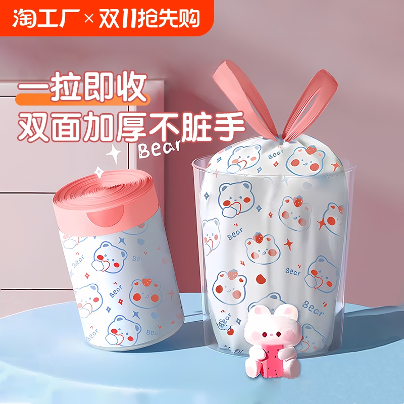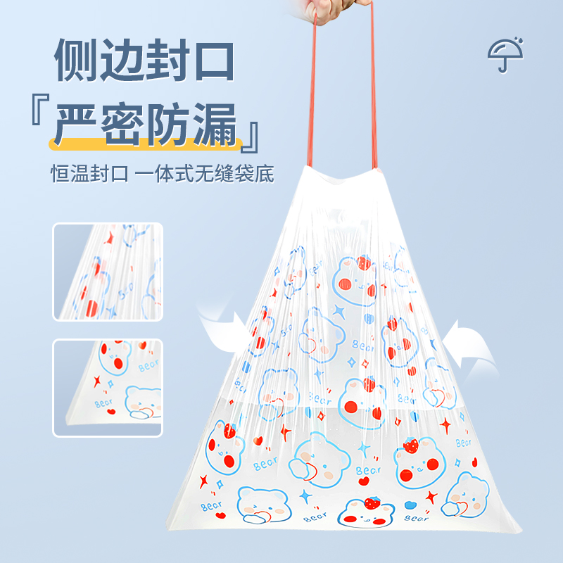 Портативный большой мусорный мешок для домашнего использования, пластиковая очень большая портативная система хранения, увеличенная толщина, на шнурках