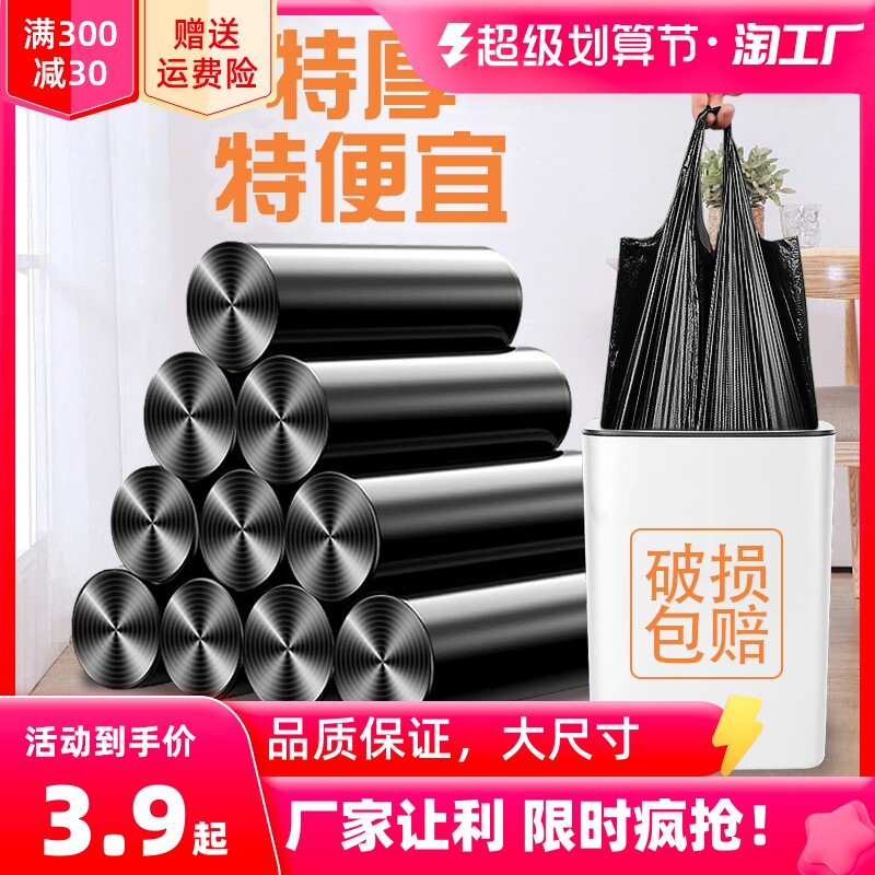 Черный портативный мусорный мешок для домашнего использования, большая гигиеническая майка топ, увеличенная толщина