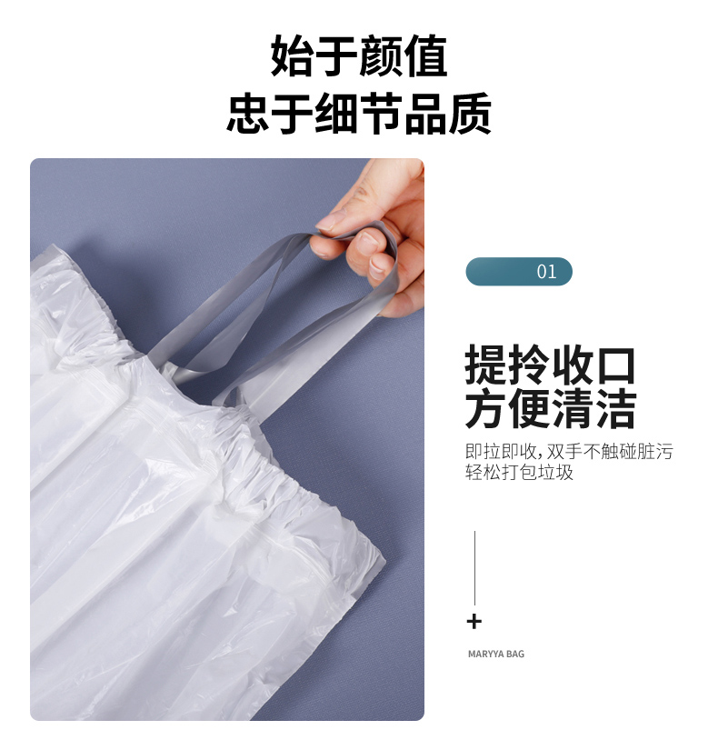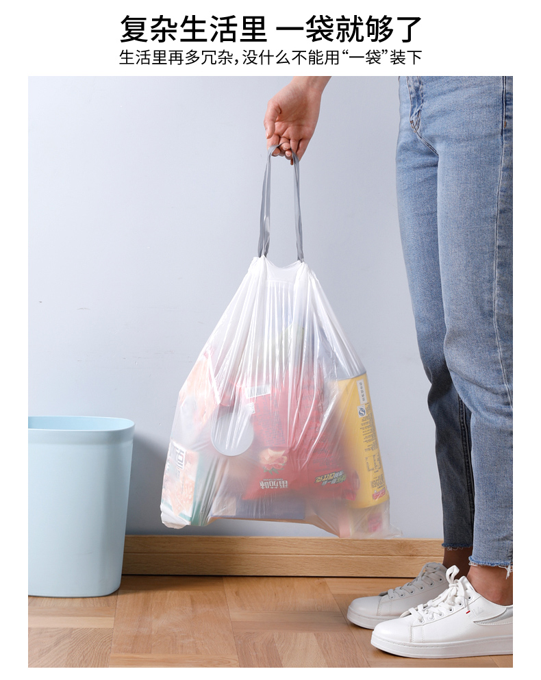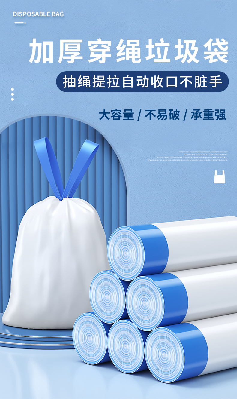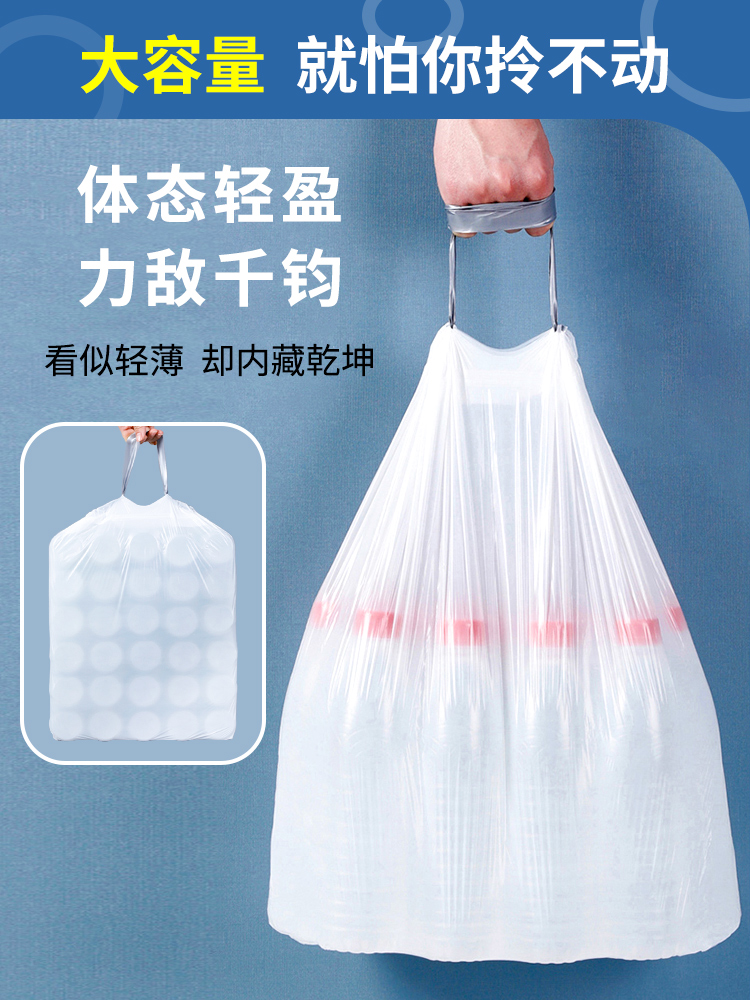 Портативный автоматический мусорный мешок для домашнего использования, большая гигиеническая пластиковая белая сумка, на шнурках, увеличенная толщина