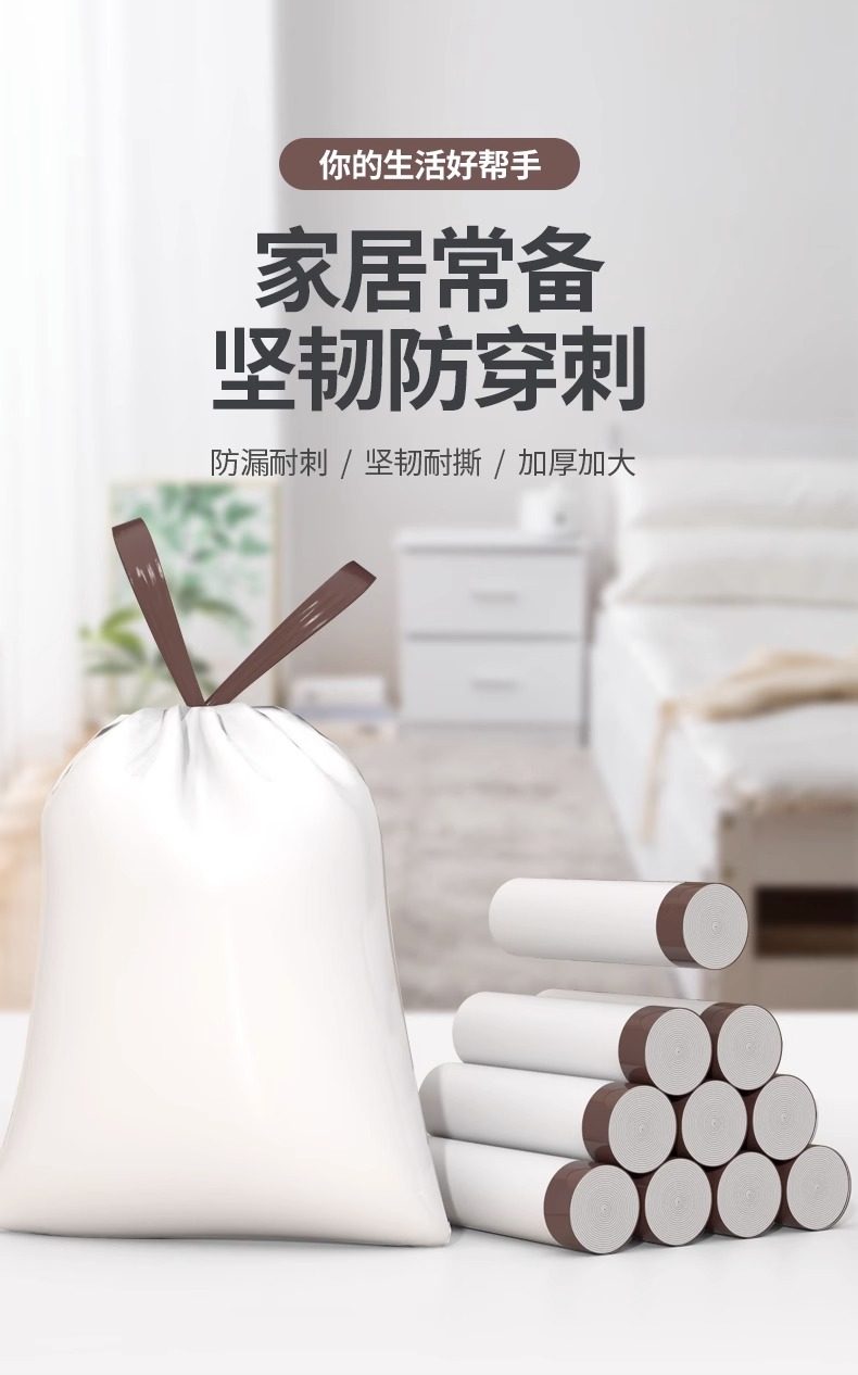 Портативный большой гигиенический пластиковый мусорный мешок, увеличенная толщина, на шнурках