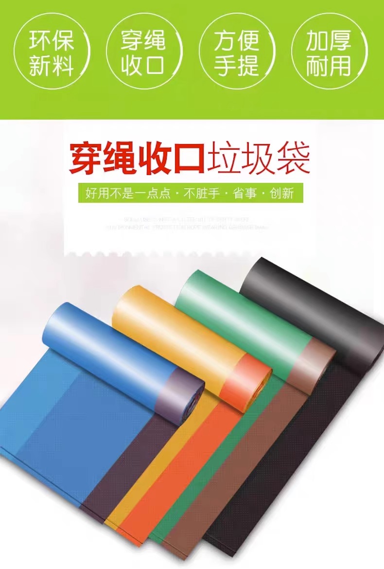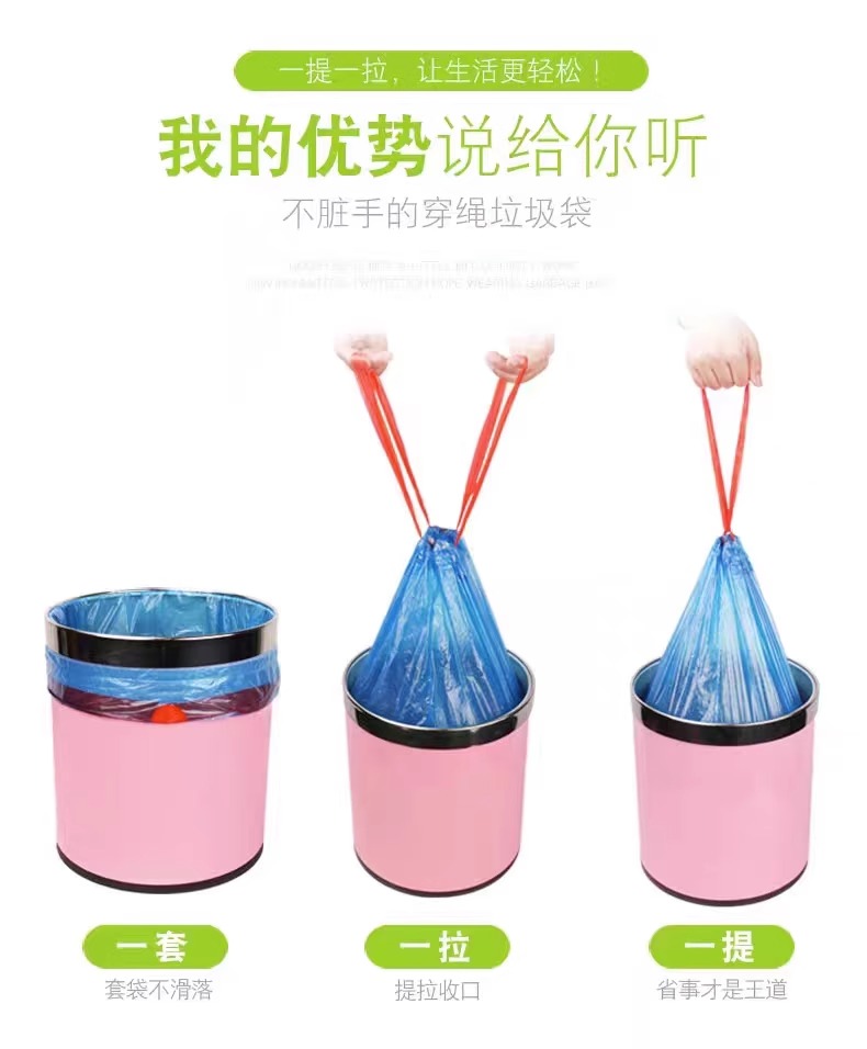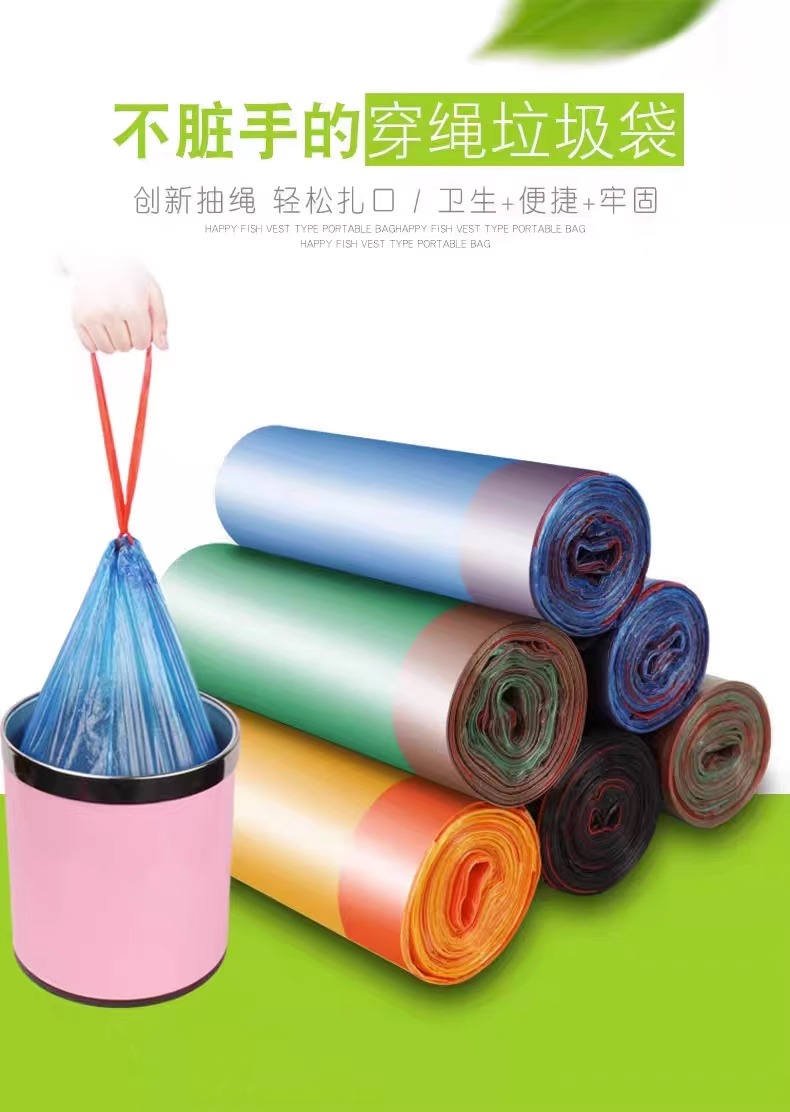 Портативный мусорный мешок для домашнего использования, большой пластиковый автоматический одноразовый жилет, увеличенная толщина, на шнурках
