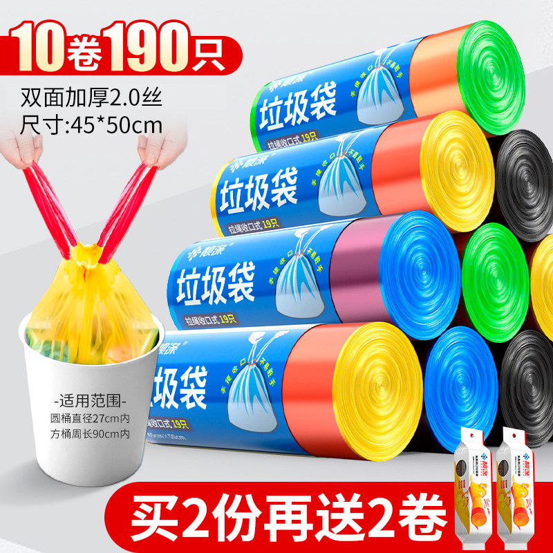 Портативный пластиковый мусорный мешок для домашнего использования, на шнурках, увеличенная толщина