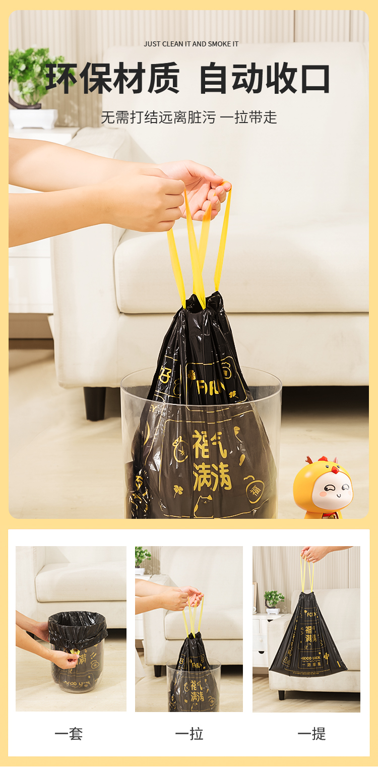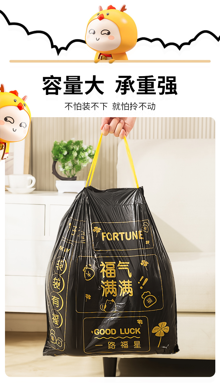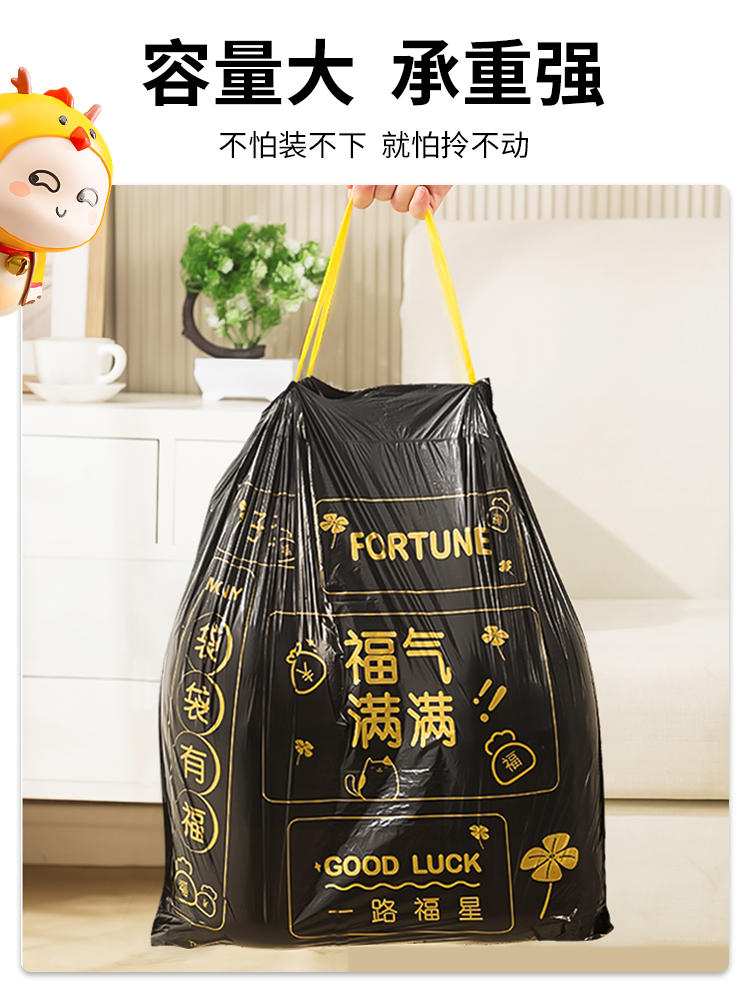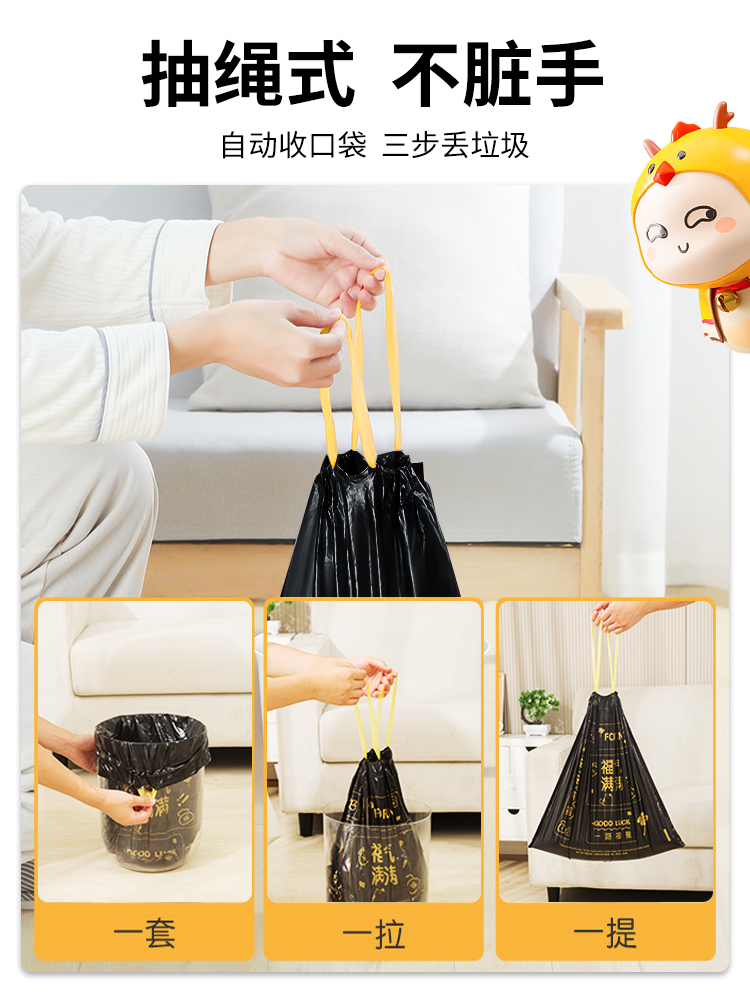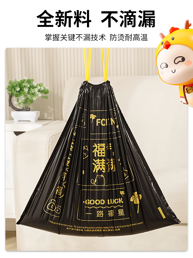 Портативный мусорный мешок для домашнего использования, большая черная пластиковая сумка, на шнурках, увеличенная толщина