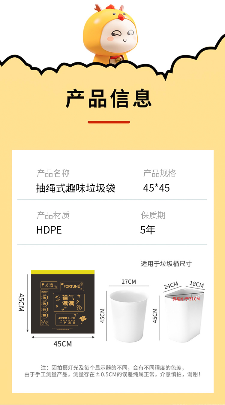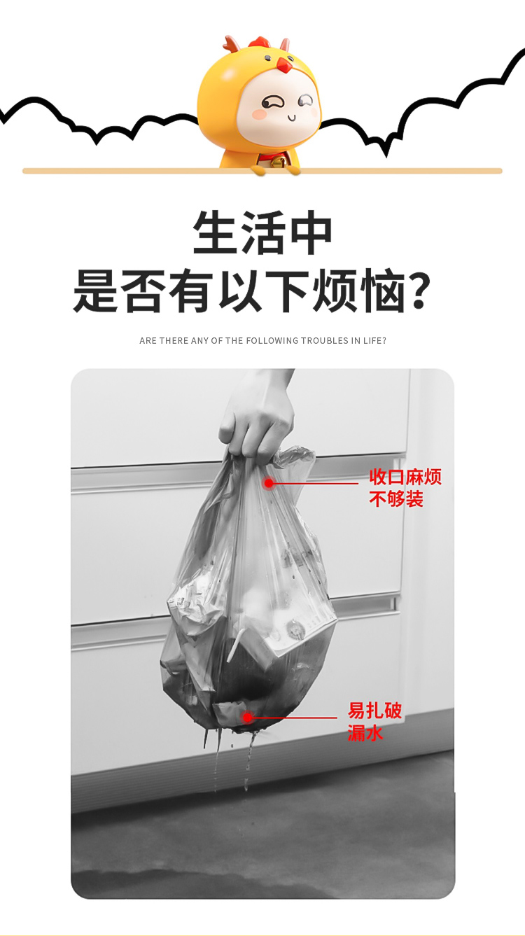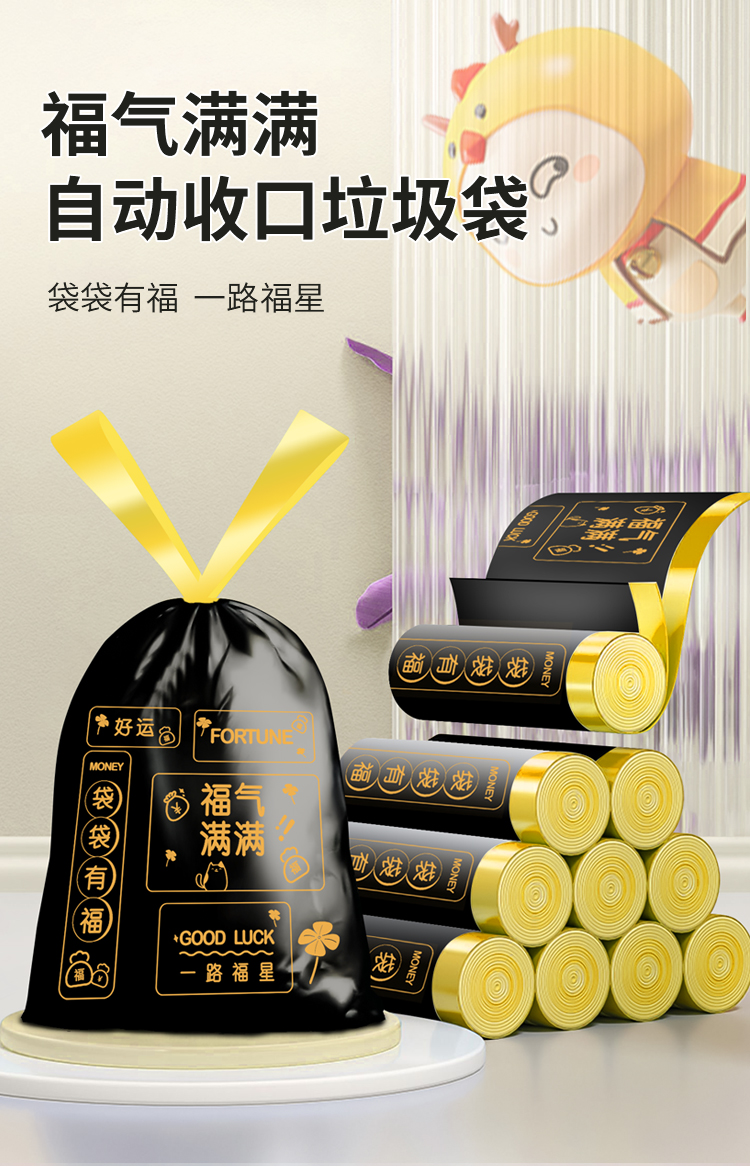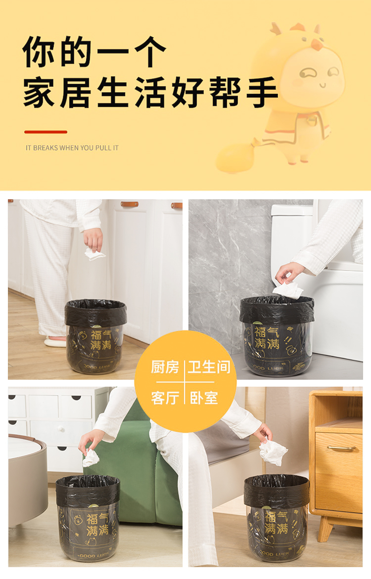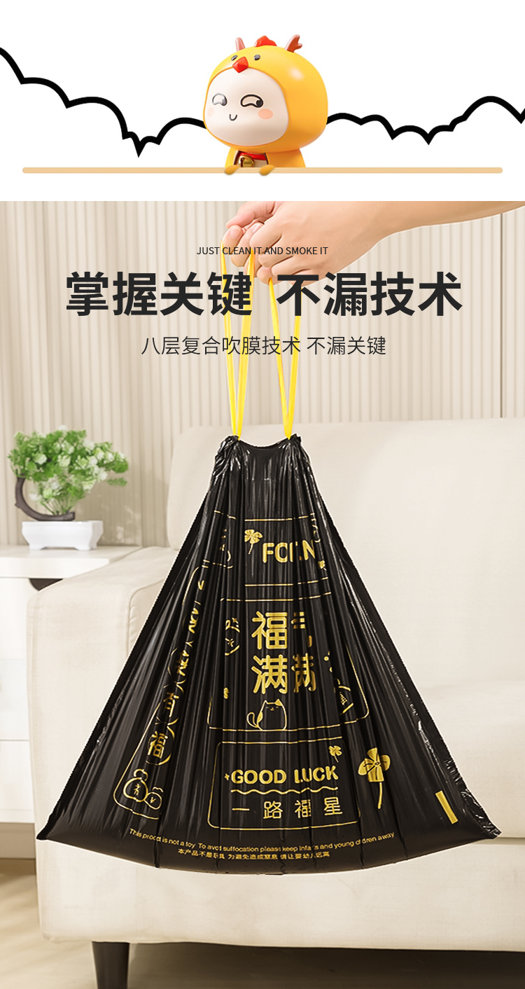 Портативный мусорный мешок для домашнего использования, большая черная пластиковая сумка, на шнурках, увеличенная толщина