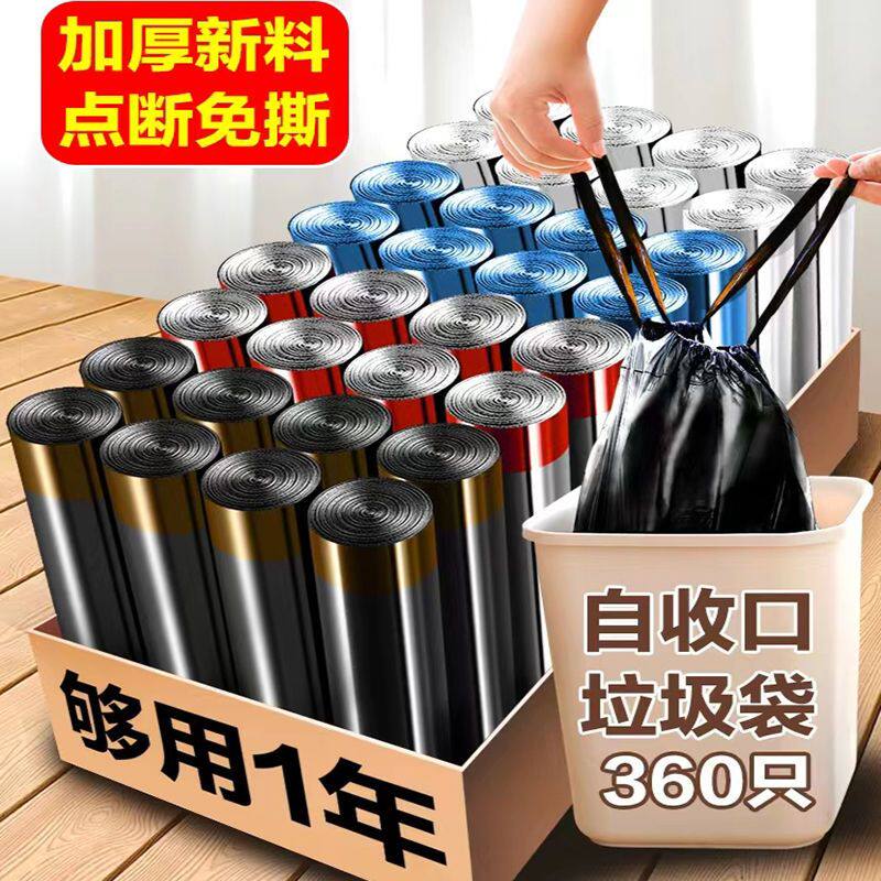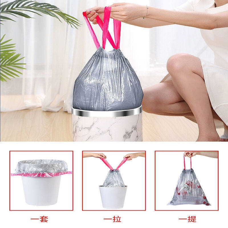 Мусорный мешок, портативная большая пластиковая черная сумка для домашнего использования, увеличенная толщина, на шнурках