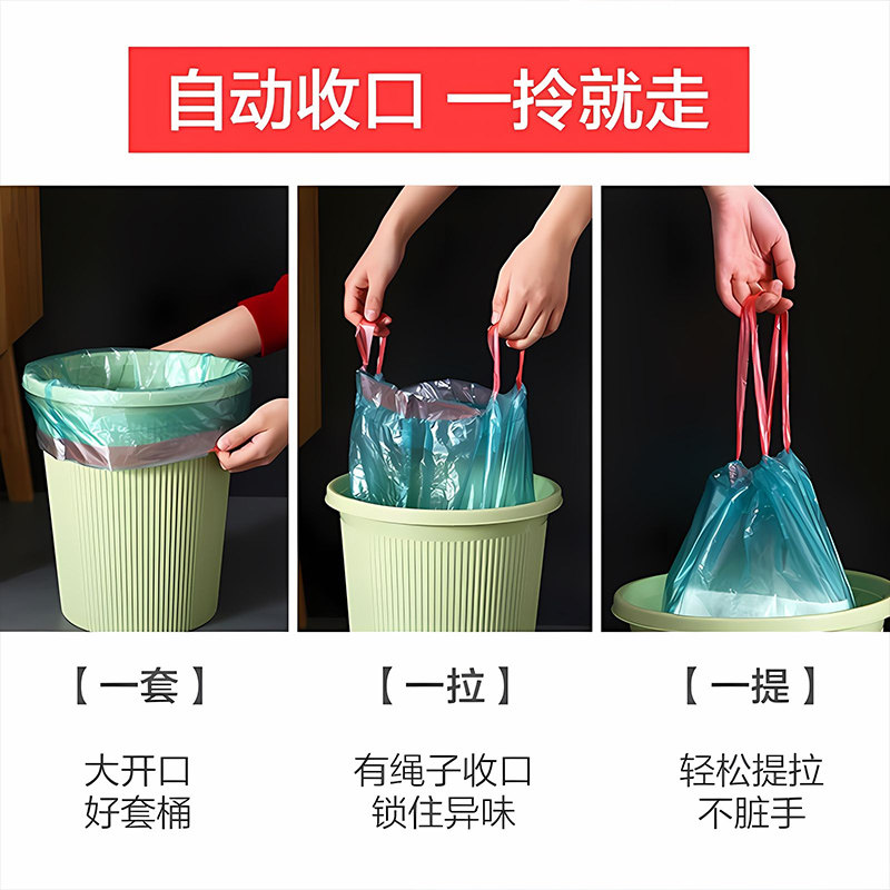 Портативный черный большой гигиенический пластиковый мусорный мешок, увеличенная толщина, на шнурках