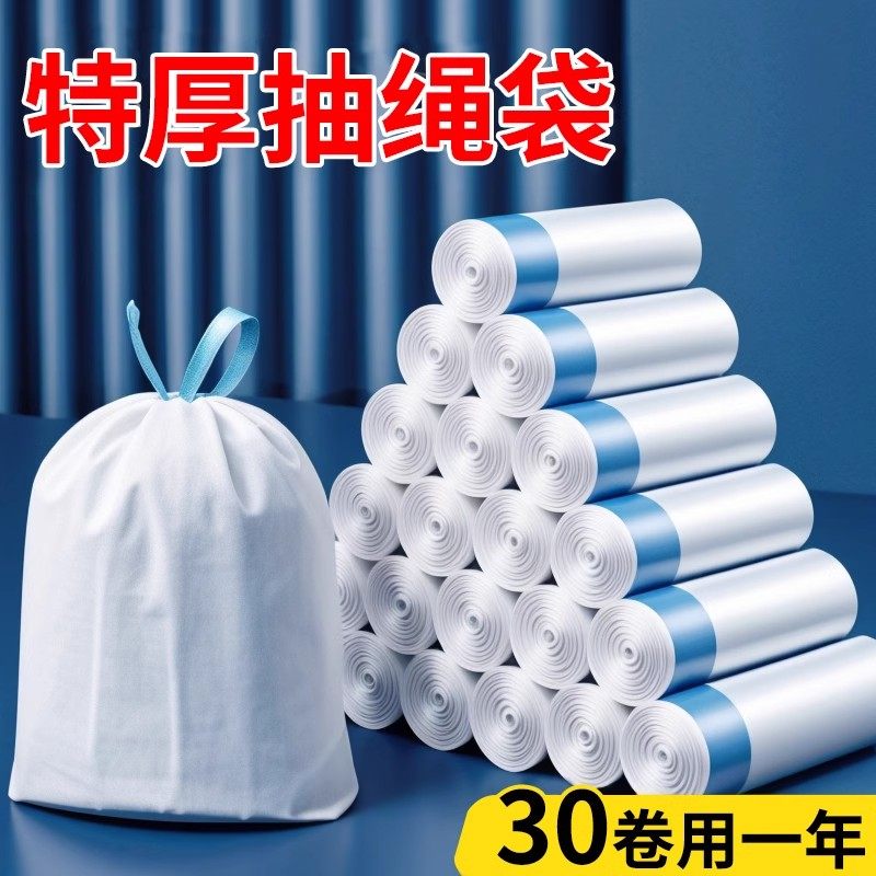 Портативный большой черный пластиковый мусорный мешок для школьников и студентов, на шнурках, увеличенная толщина