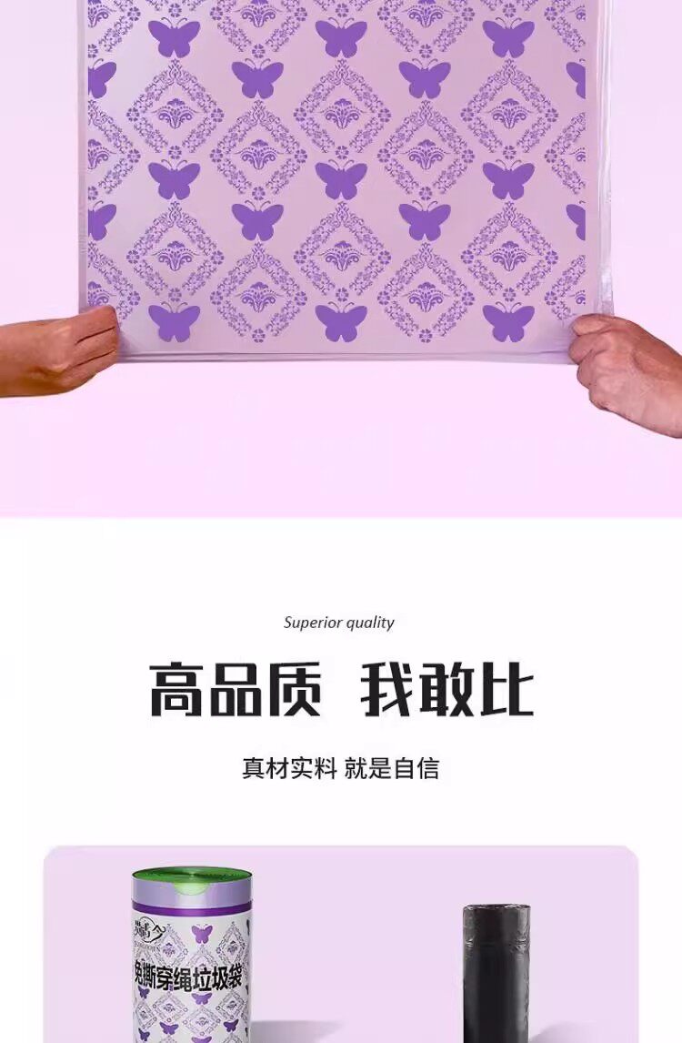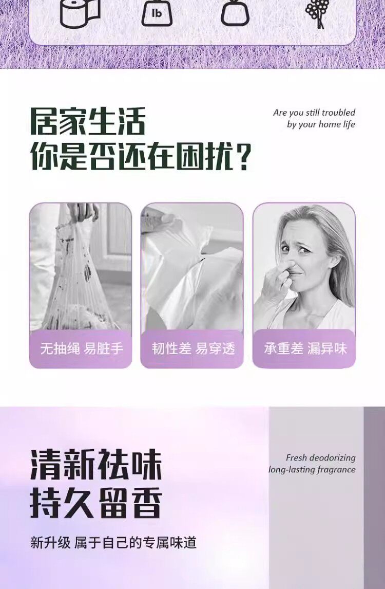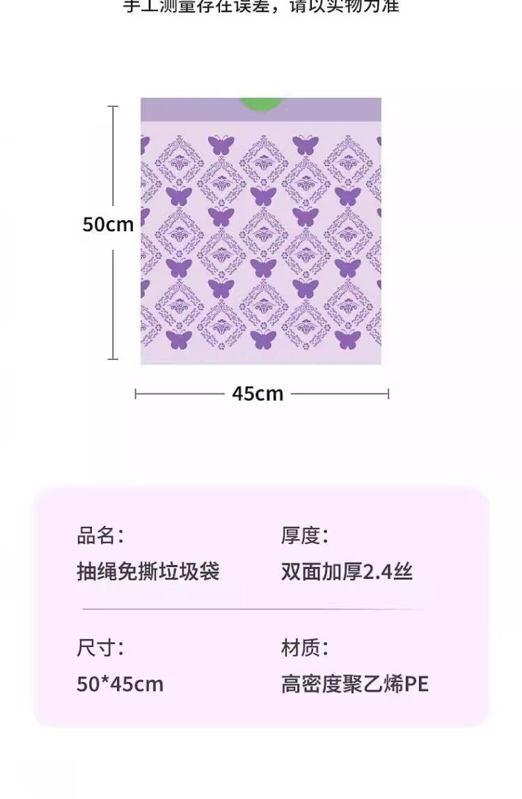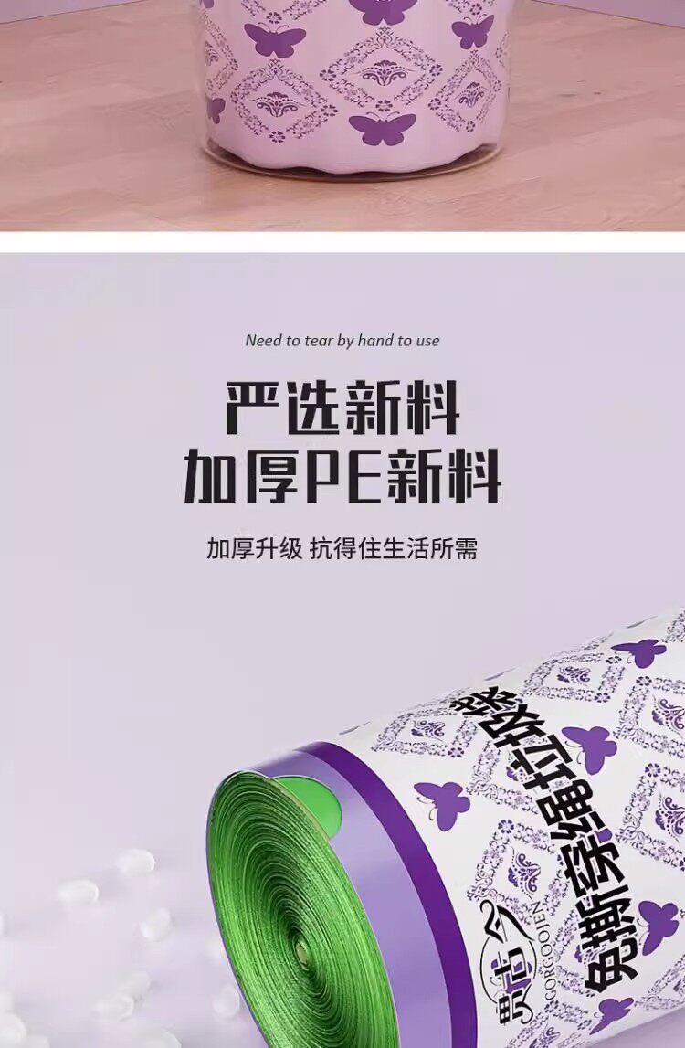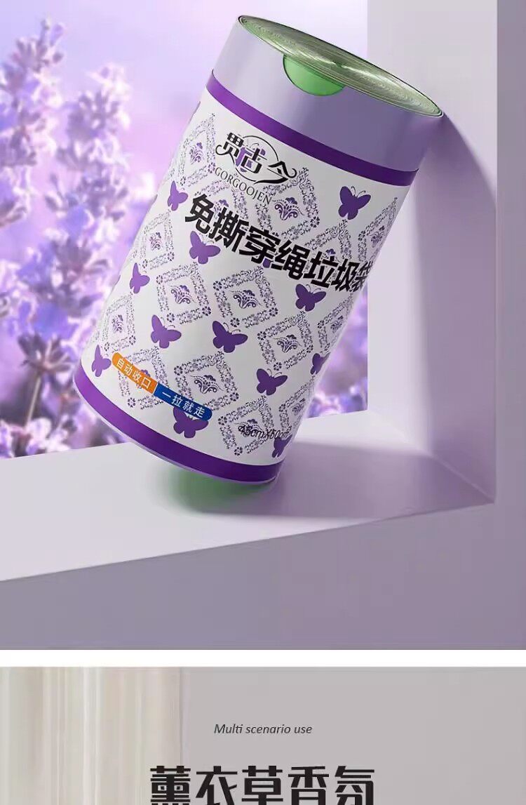 Лавандовый портативный пластиковый гигиенический мусорный мешок, на шнурках, увеличенная толщина