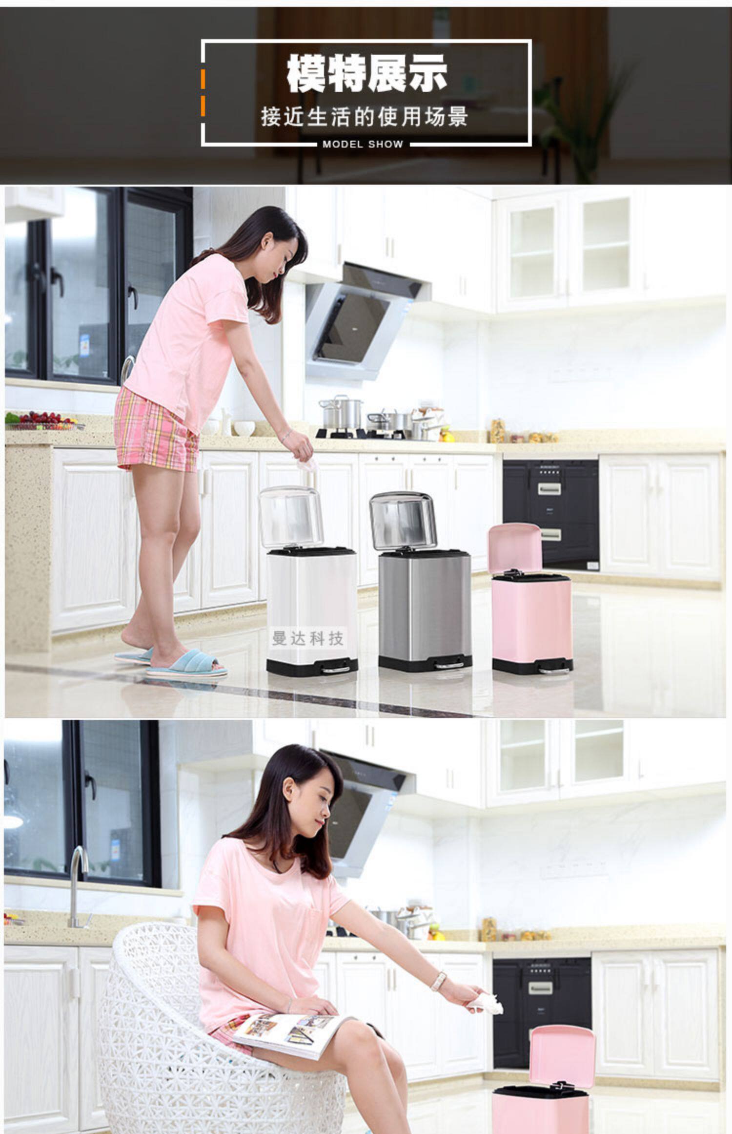 Беззвучное мусорное ведро из нержавеющей стали для домашнего использования, модная креативная большая система хранения