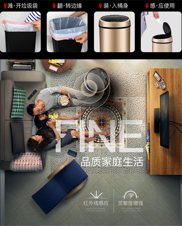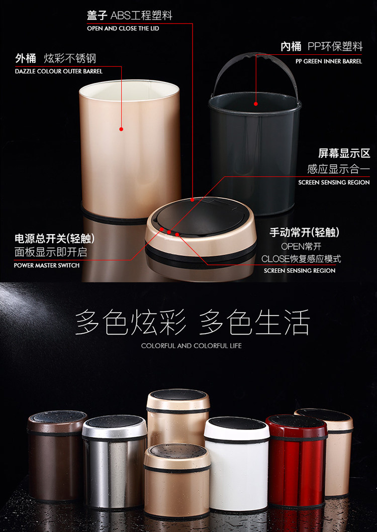 Умное индукционное перезаряжаемое креативное мусорное ведро с зарядкой из нержавеющей стали для домашнего использования для гостиной, полностью автоматический