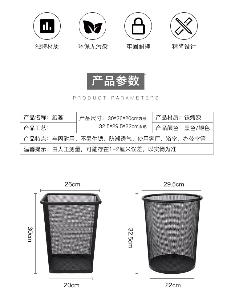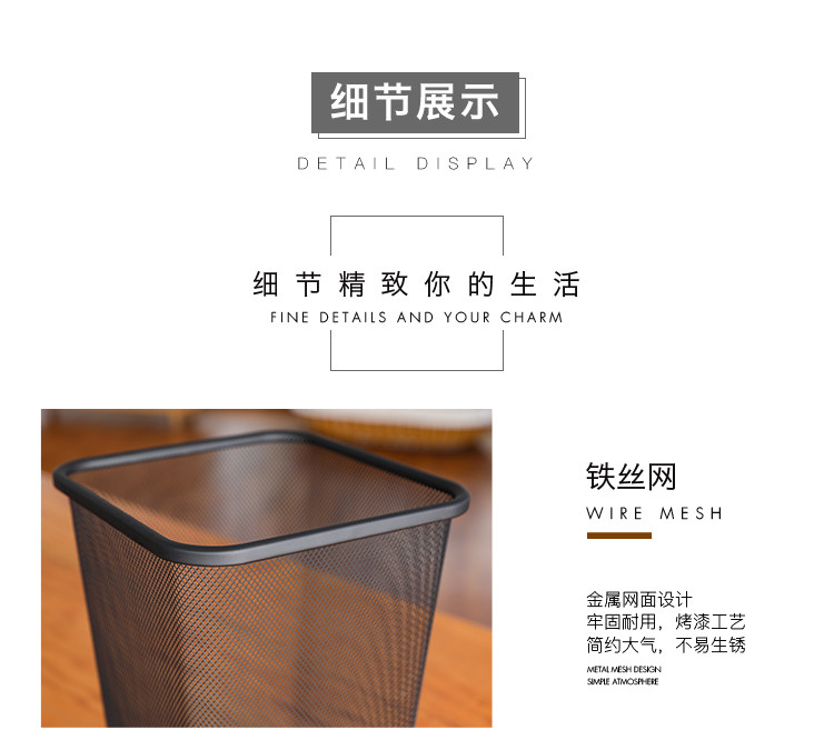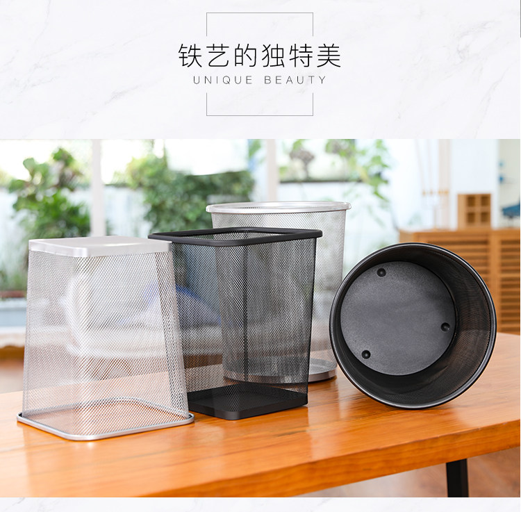 Металлическое квадратное креативное комнатное мусорное ведро, увеличенная толщина, простой и элегантный дизайн
