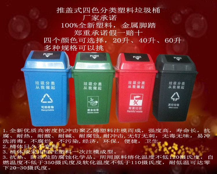 【Применимое место проведения】:Используется для сортировки и сбора мусора, таких как система управления городским управлением, система санитарии, система управления недвижимостью, дом, сообщество, офис, отель, фабрика, общественное питание, городские дороги, различные квадраты, корпоративные единицы, сады, парки, школы, больницы, станции, доки, живописные туристические районы и другие общественные места.