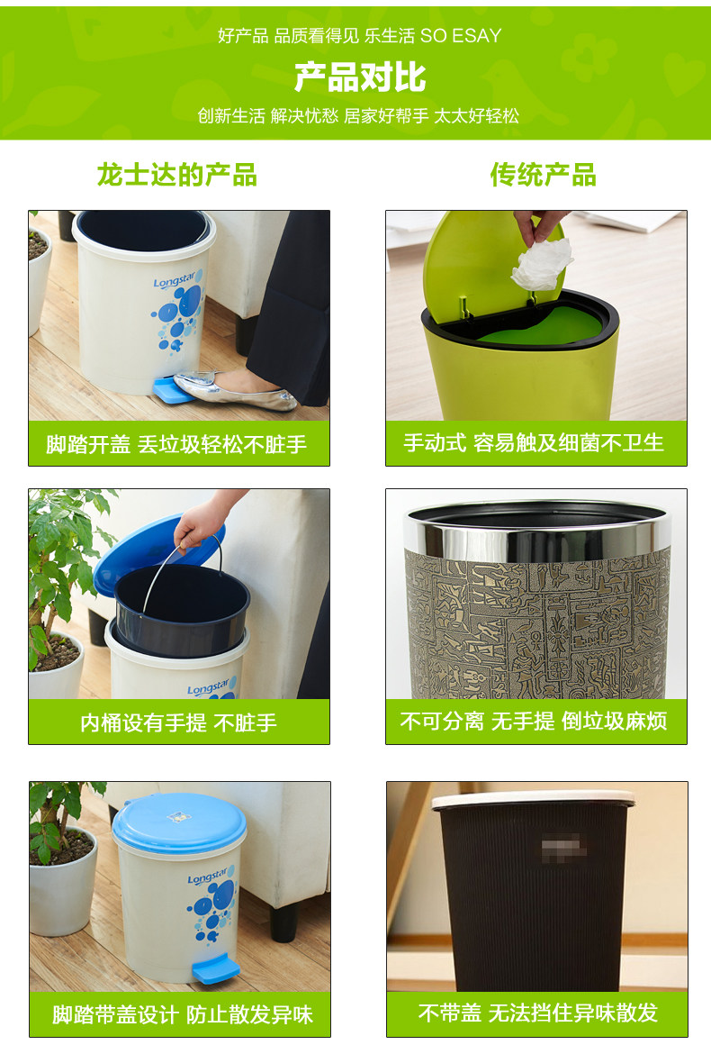 Большое пластиковое мусорное ведро для домашнего использования для гостиной, вкладыш