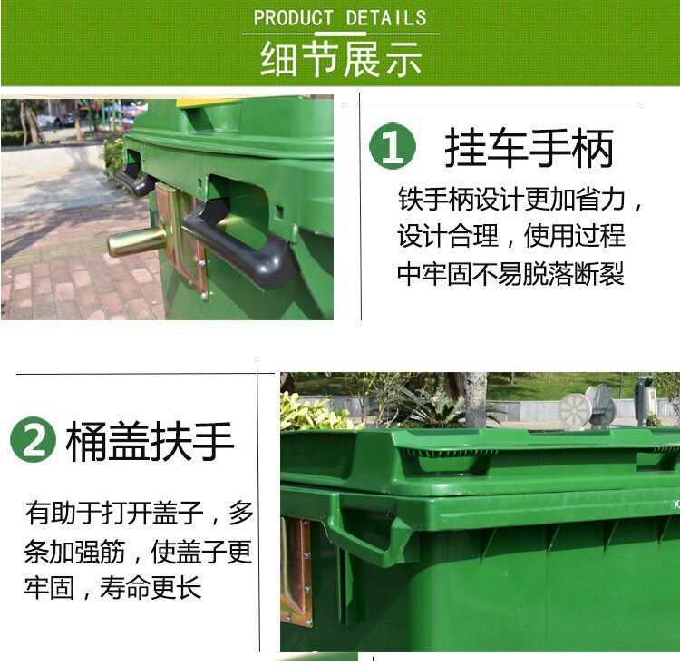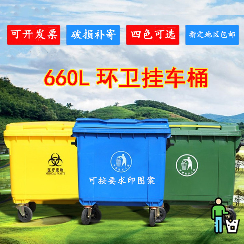 660L Большой санитарный утолщенный мусор с мусорными баками с большой капочностью на открытом воздухе.