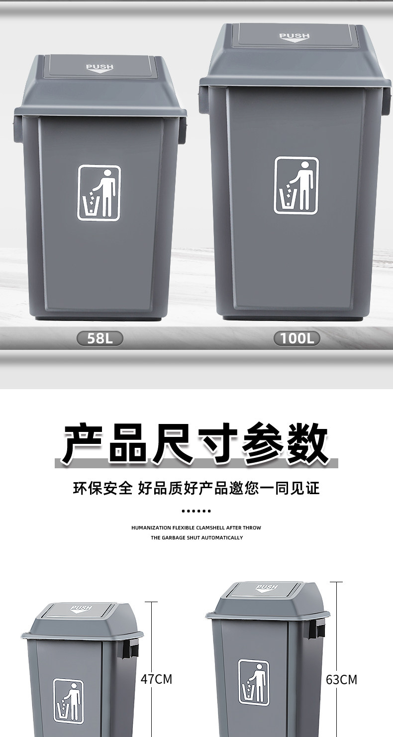 Chaobao мусорный бак с поворотной крышкой и крышкой, большой уличный коммерческий мусорный бак для кухни, общественного питания, ванной комнаты
