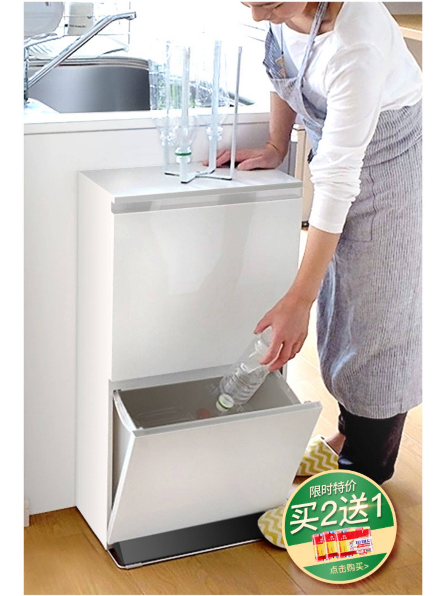 Импортированные ссоры в японском стиле двойной сортировка мусорных банок для домашней кухни влажные и сухие кухонные отходы с крышкой педаль