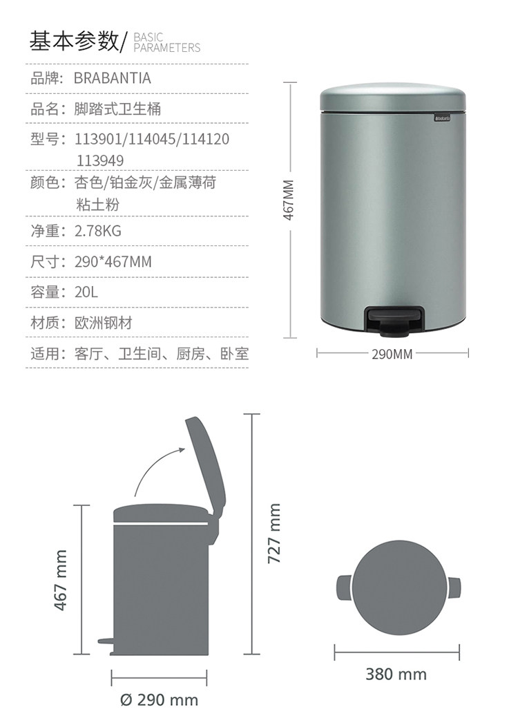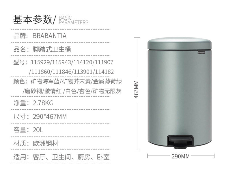 brabantia Импортное мусорное ведро из нержавеющей стали для домашнего использования, система хранения