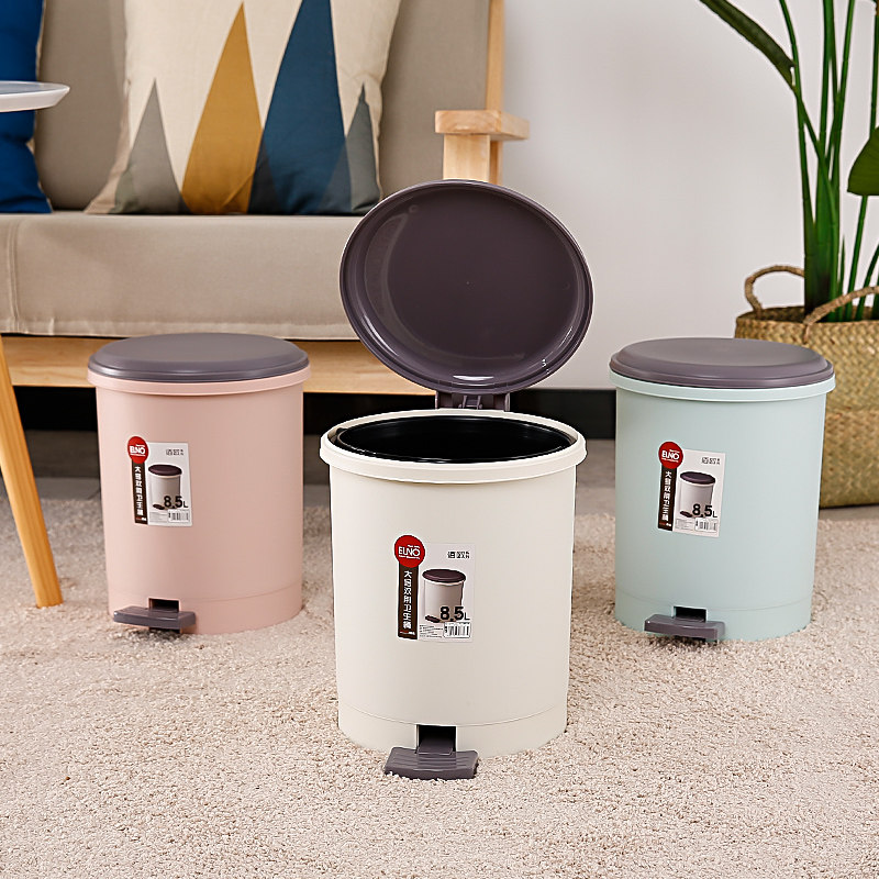 Мусорная корзина дома с большой ногой, наступающей на санитарную ведру туалетную бумагу, корзина, гостиная гостиная кухня с трубкой для удара