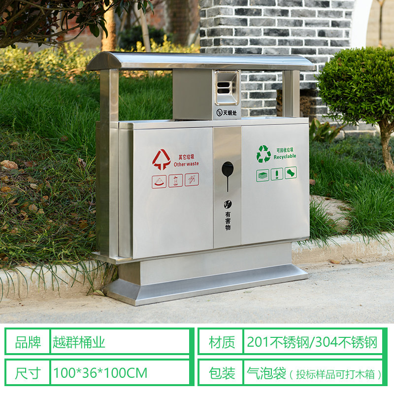 Большое общественное мусорное ведро из нержавеющей стали для коммерческого использования с разделителями
