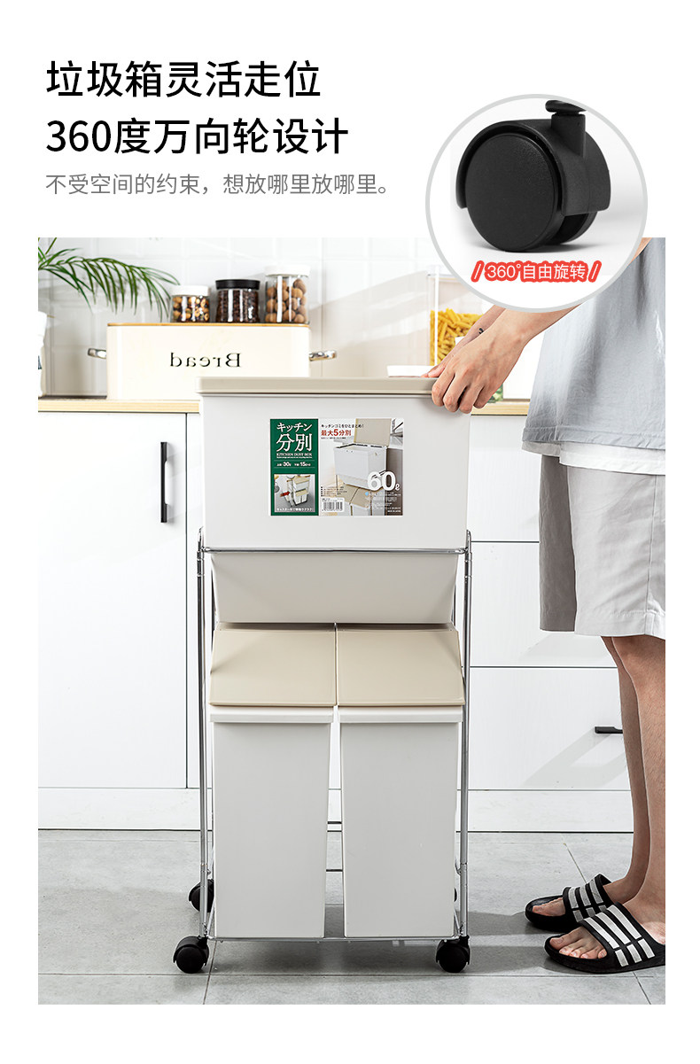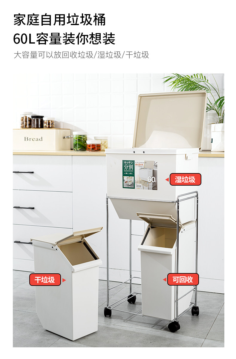 Японское импортное вместительное и большое мусорное ведро для домашнего использования с разделителями