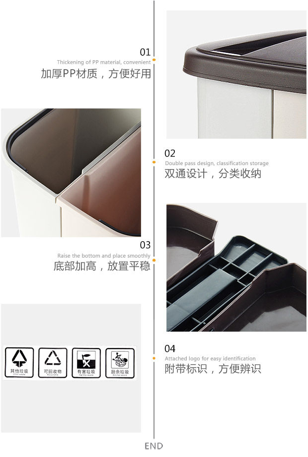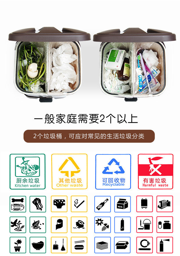 Большое мусорное ведро для домашнего использования с разделителями
