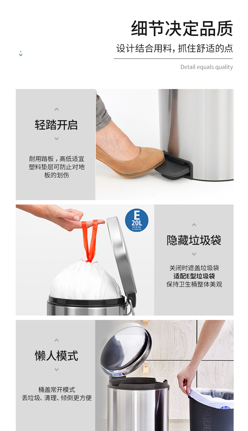 brabantia Импортное мусорное ведро для домашнего использования из нержавеющей стали, большой размер