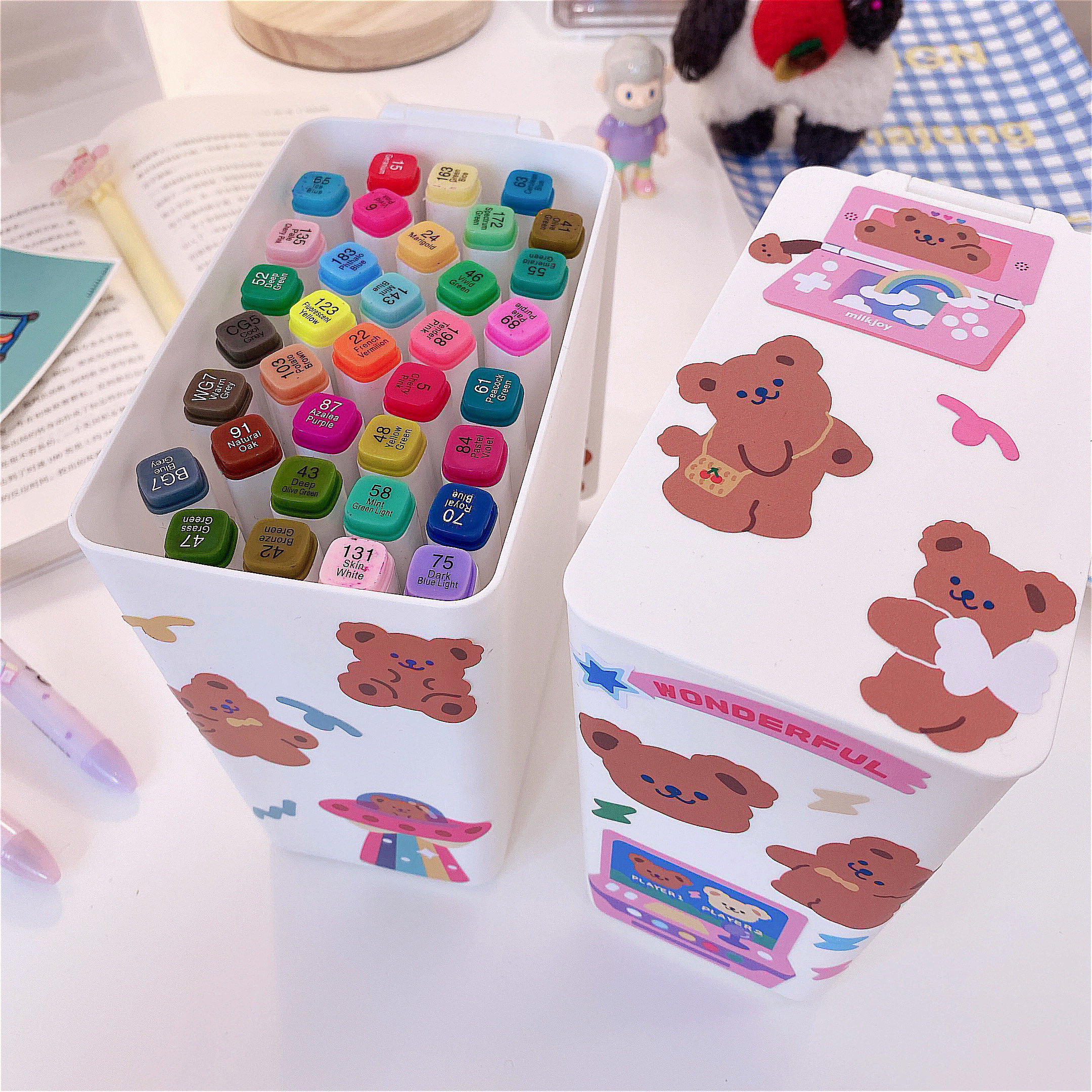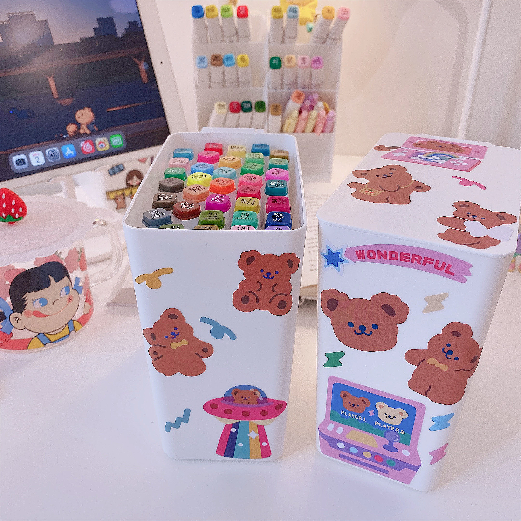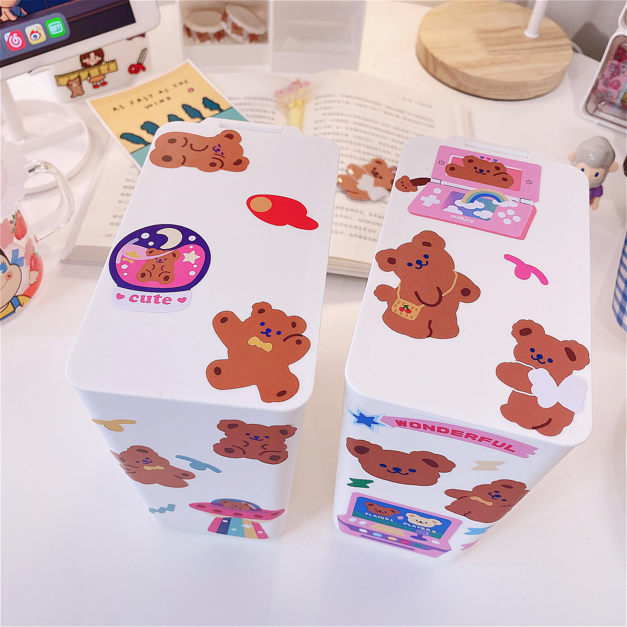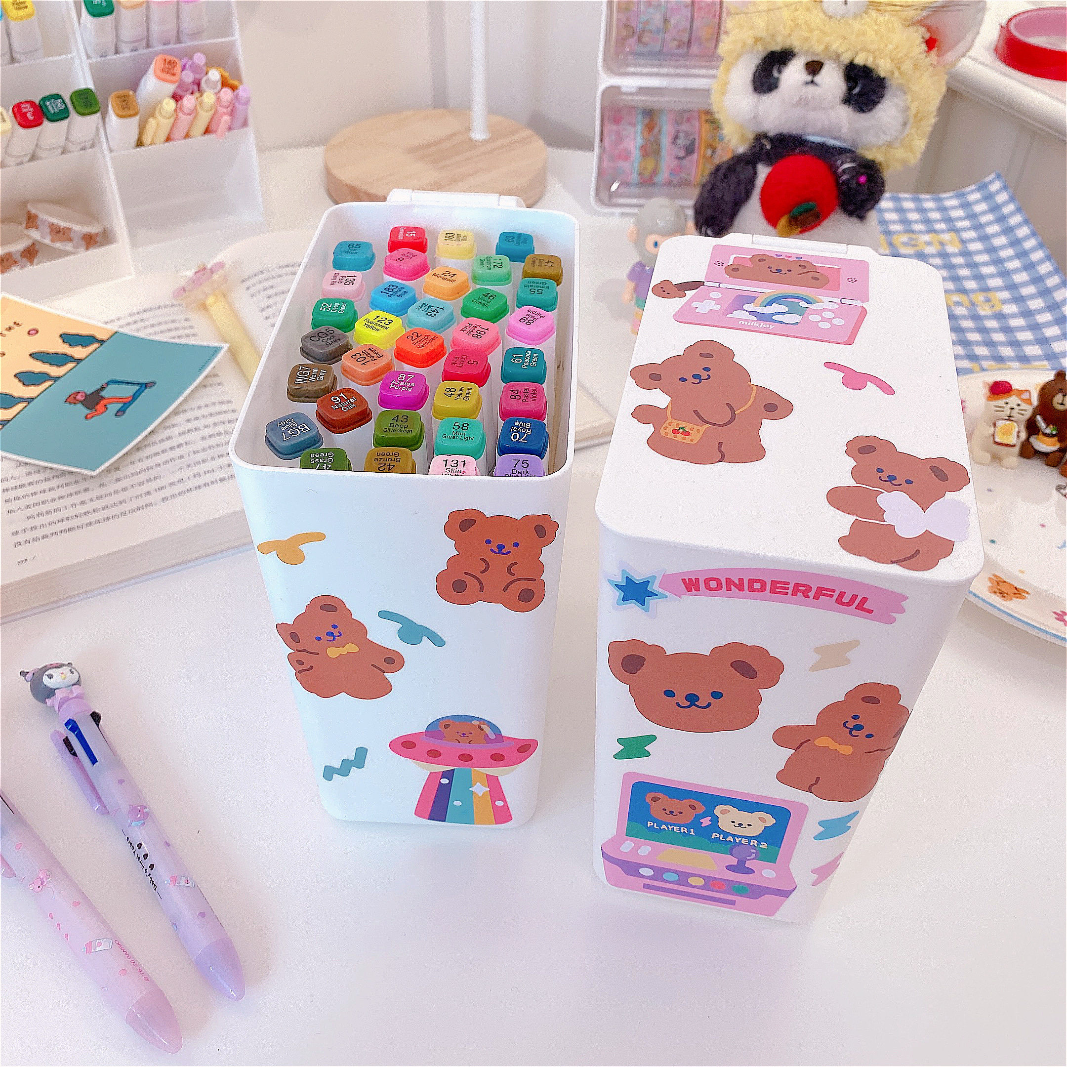 Милое мусорное ведро, держатель для ручек, система хранения для школьников и студентов, канцтовары, с медвежатами, простой и элегантный дизайн