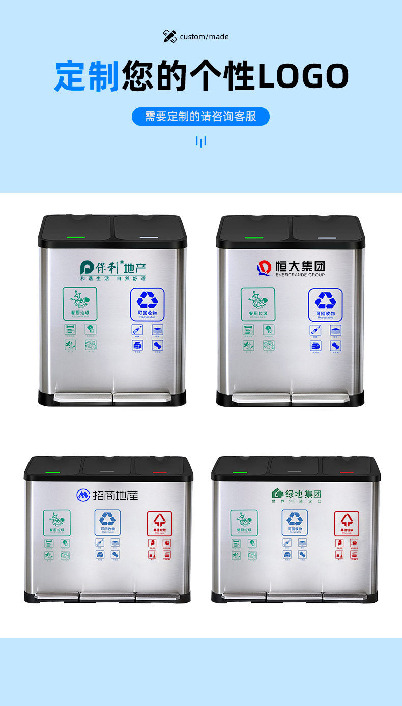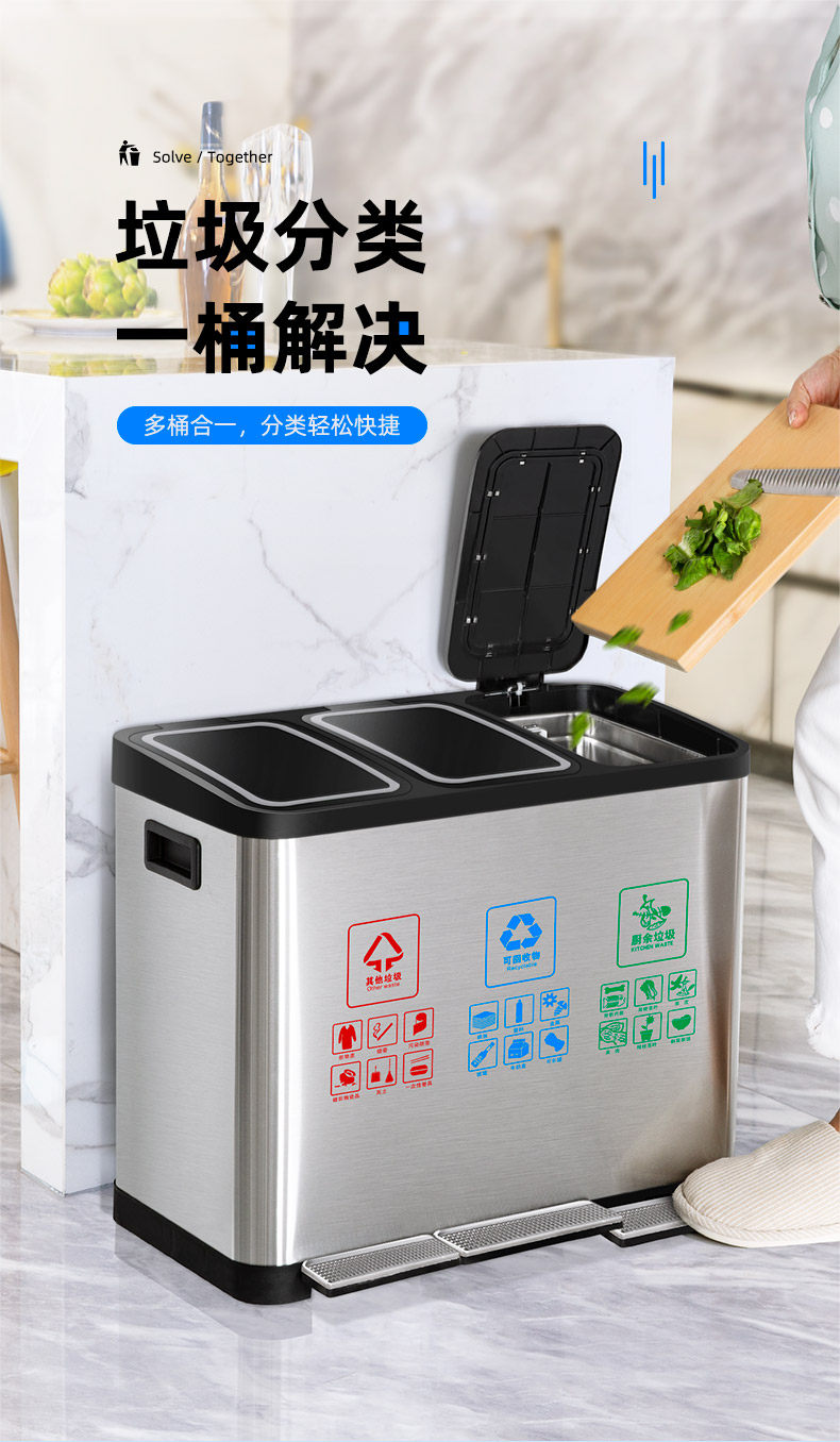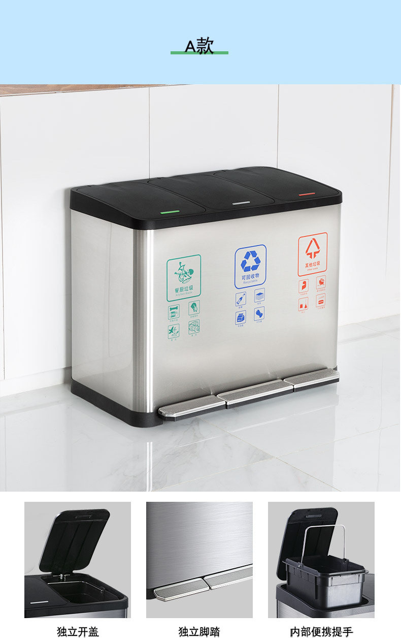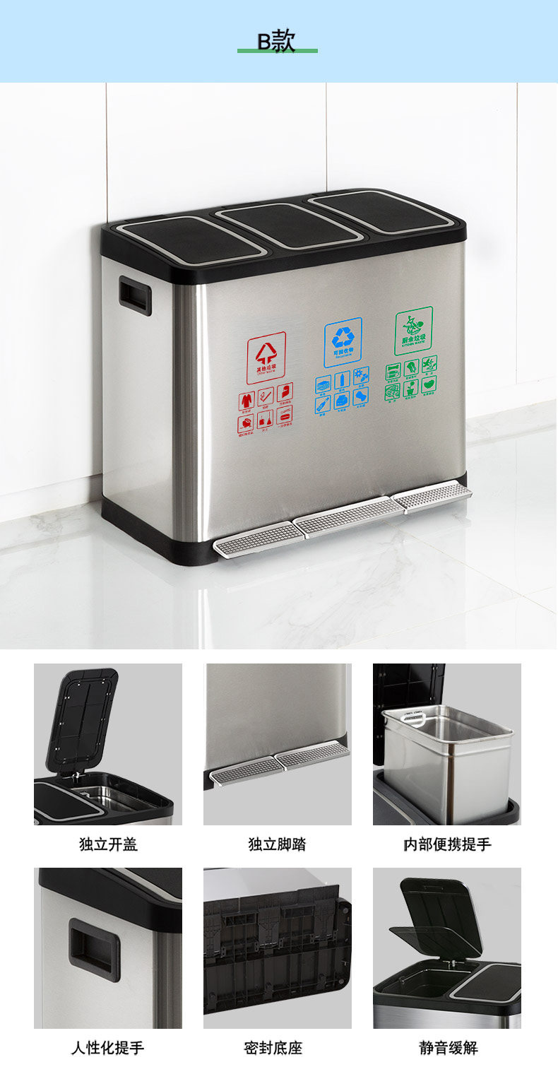 Большое общественное мусорное ведро из нержавеющей стали для коммерческого использования для гостиной с разделителями
