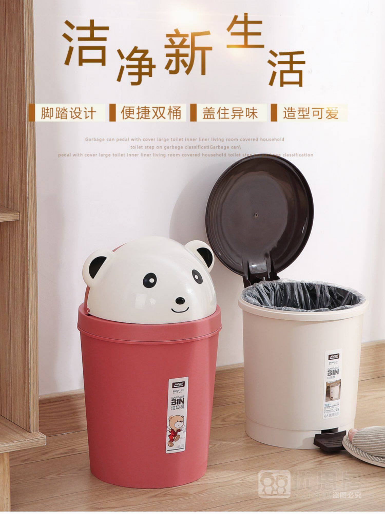 Мультяшное милое маленькое мусорное ведро для домашнего использования для гостиной, простой и элегантный дизайн