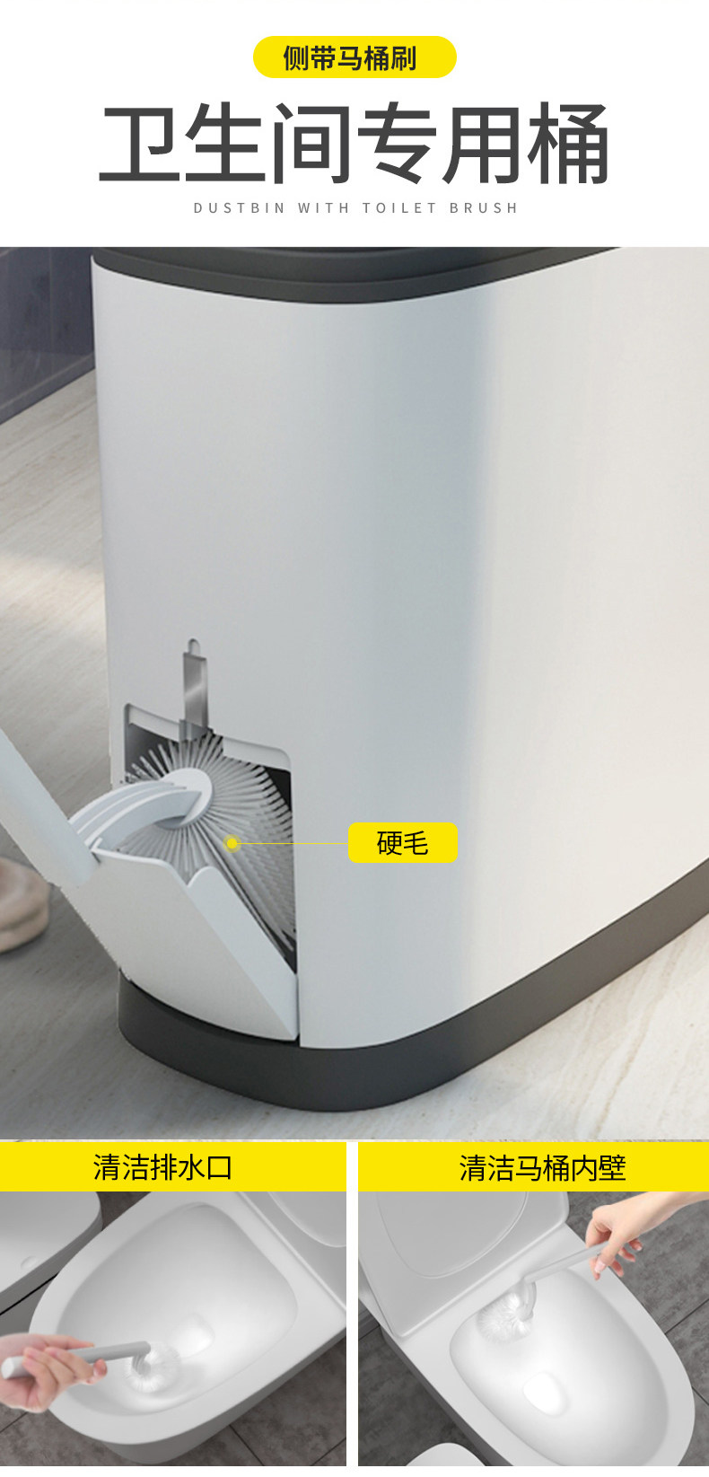 Туалет для мусора с туалетом и кистью интегрированная узкая шить, нажатая туалетная туалетная туалетная бумага, корзина туалетной туалетной бумаги