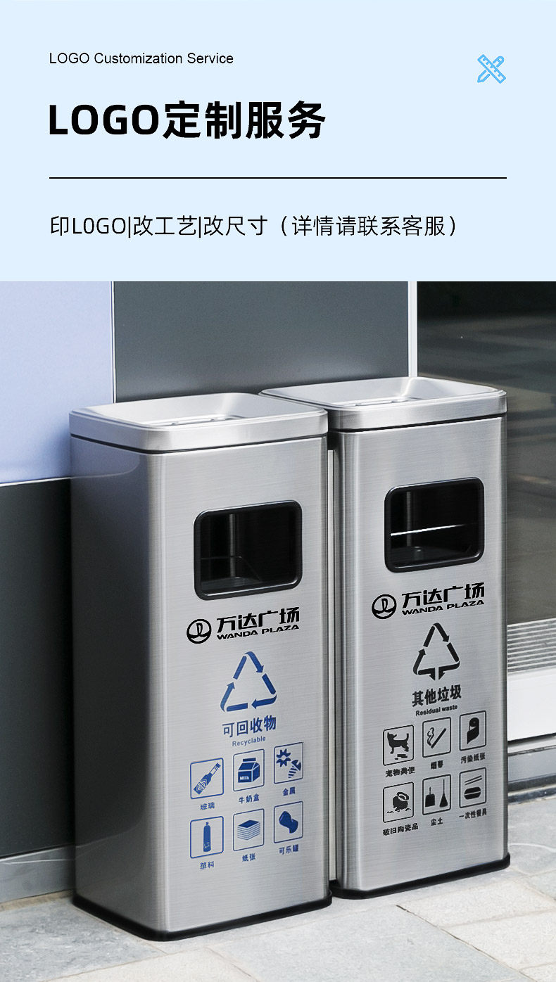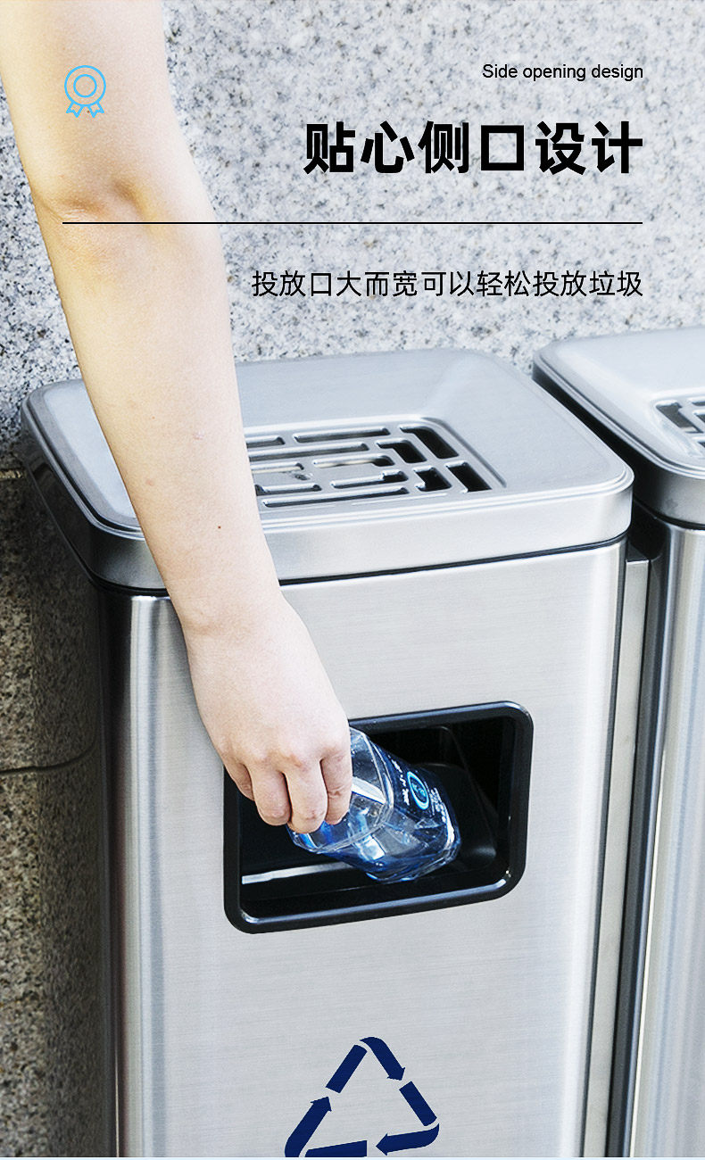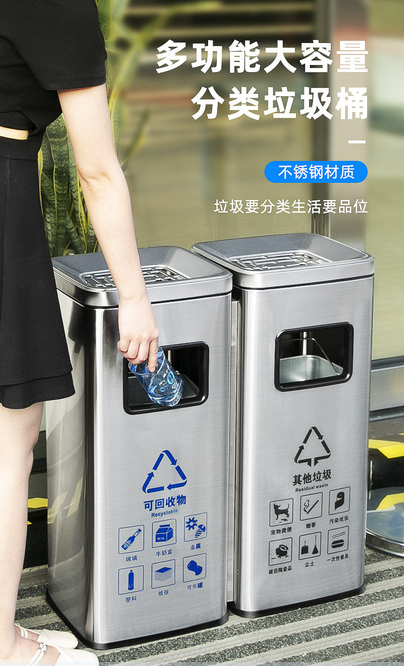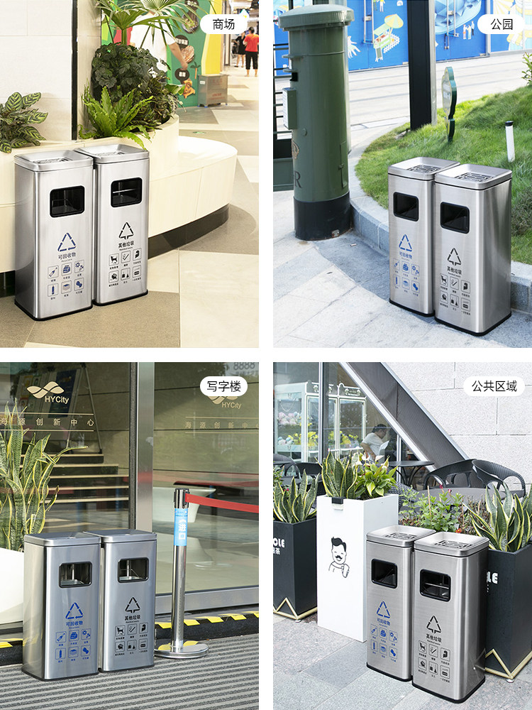 Вместительное и большое мусорное ведро из нержавеющей стали для коммерческого использования с разделителями