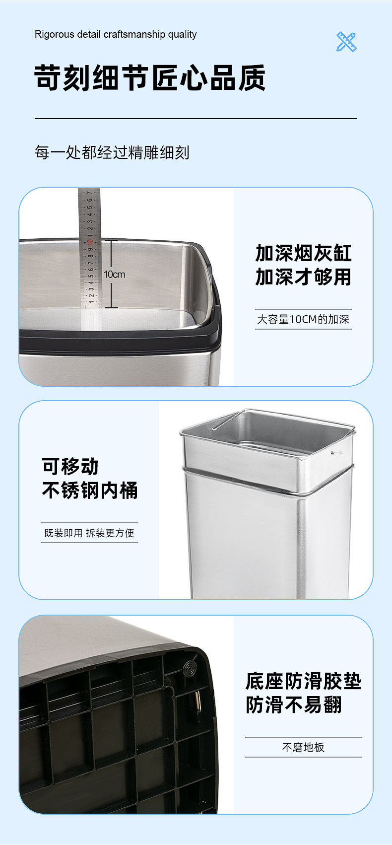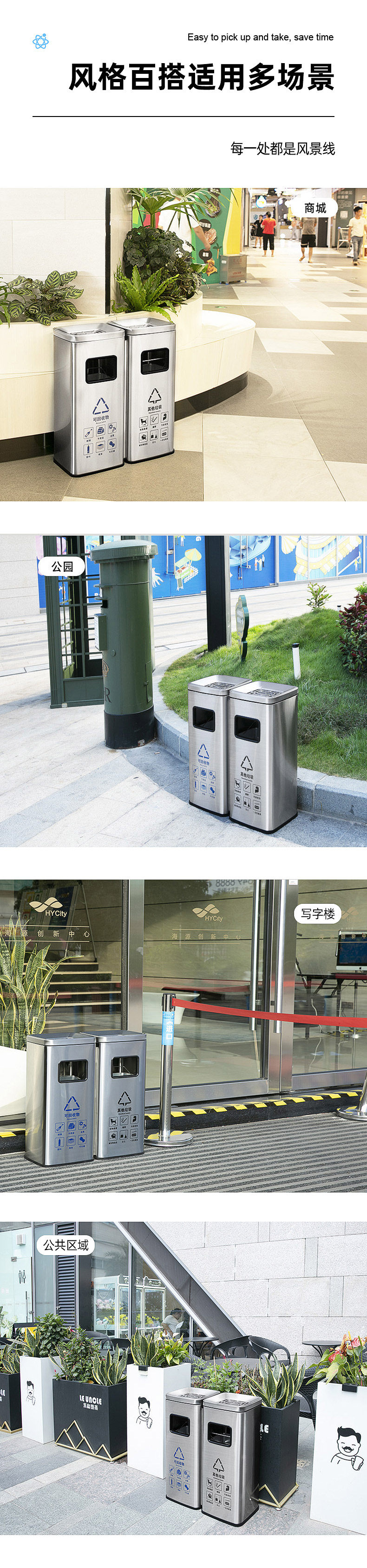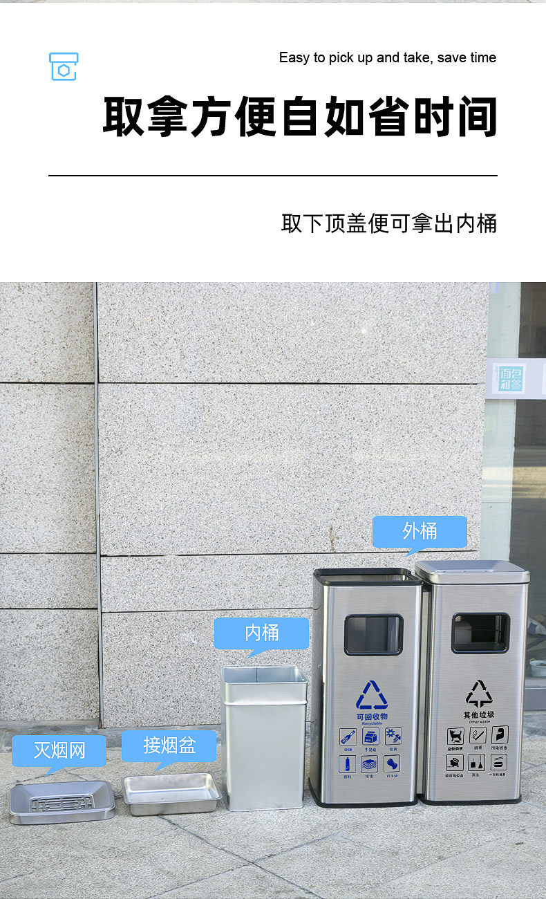 Вместительное и большое мусорное ведро из нержавеющей стали для коммерческого использования с разделителями
