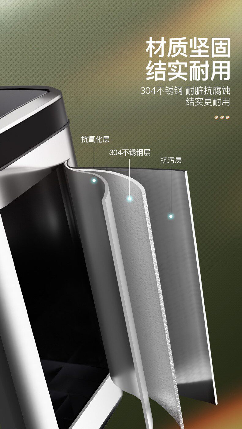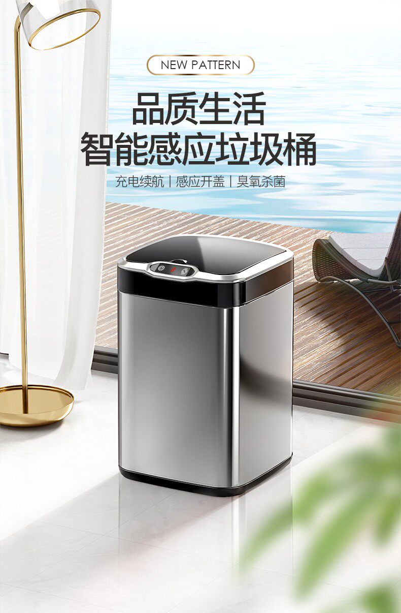 Умное индукционное вместительное и большое мусорное ведро для гостиной из нержавеющей стали
