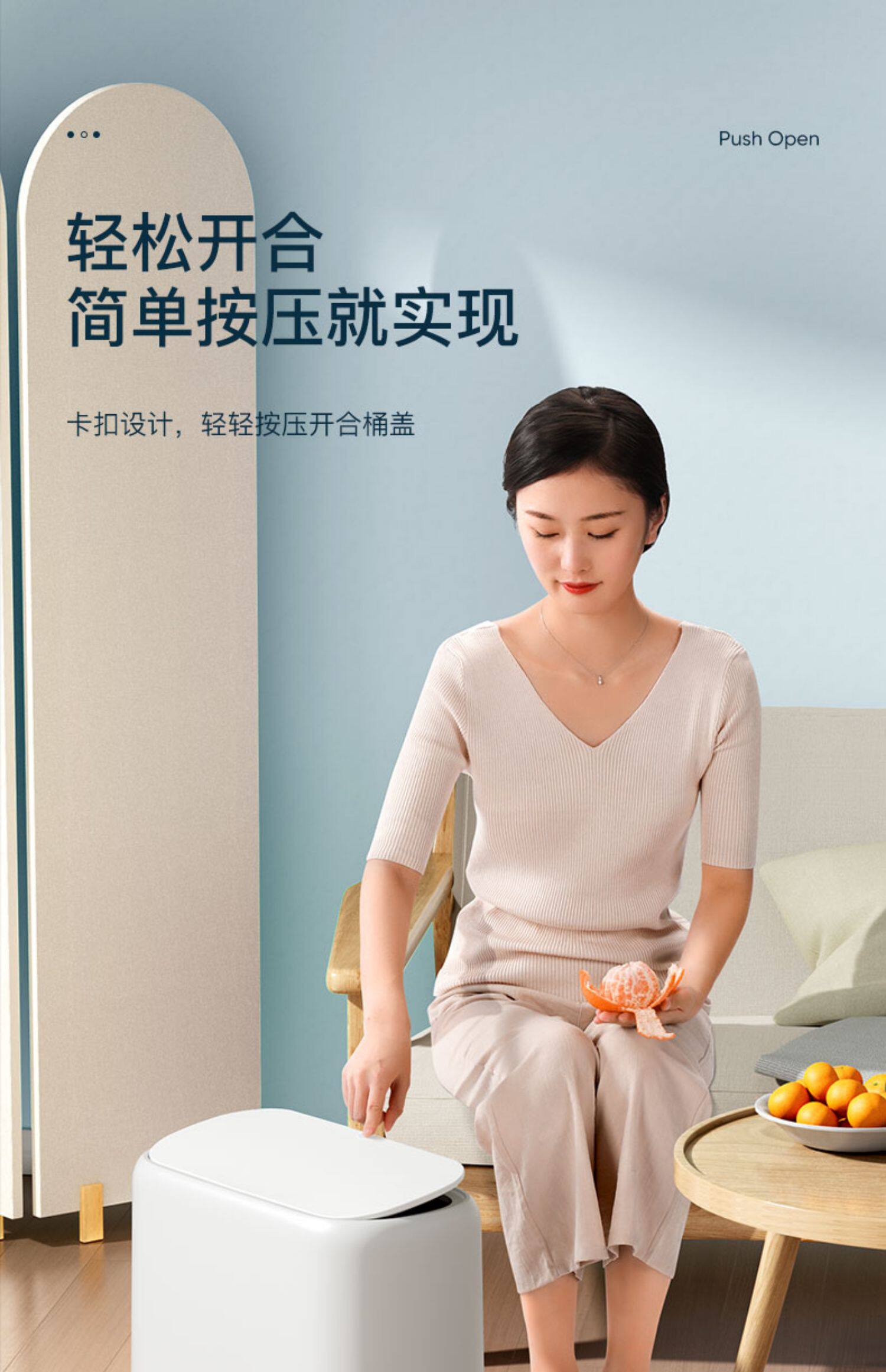 Jiapu Trash Bin Home Seam Туалетный туалет гостиная с крышкой с узкой прессой кухней автоматическая и легкая роскошь