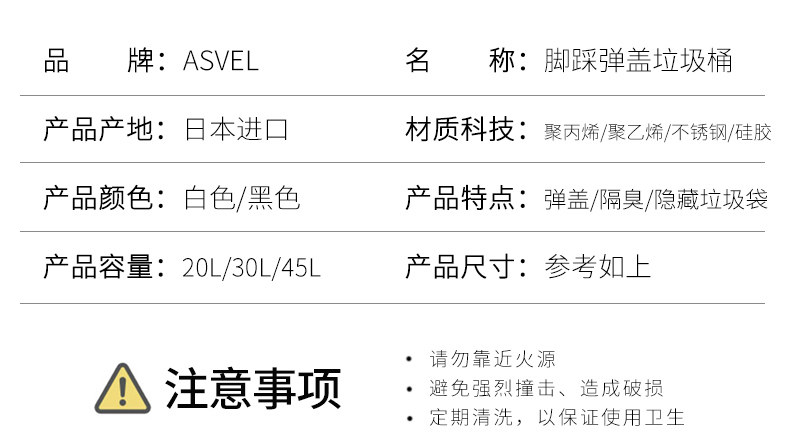 Asvel Импортированная мусорная банка в туалете с кухонной гостиной гостиной педаль легкая роскошная роскошная санитарная ведро