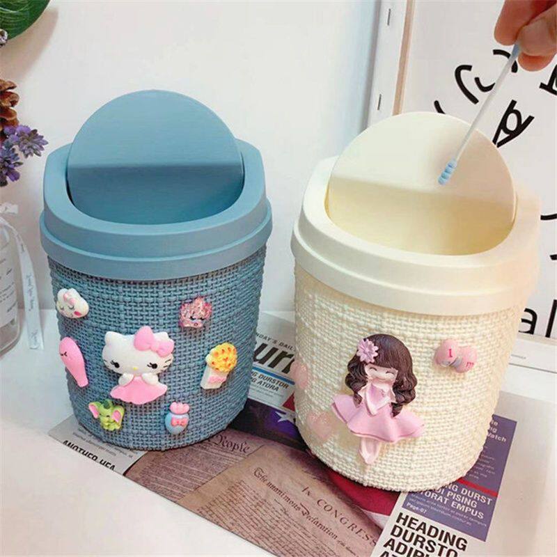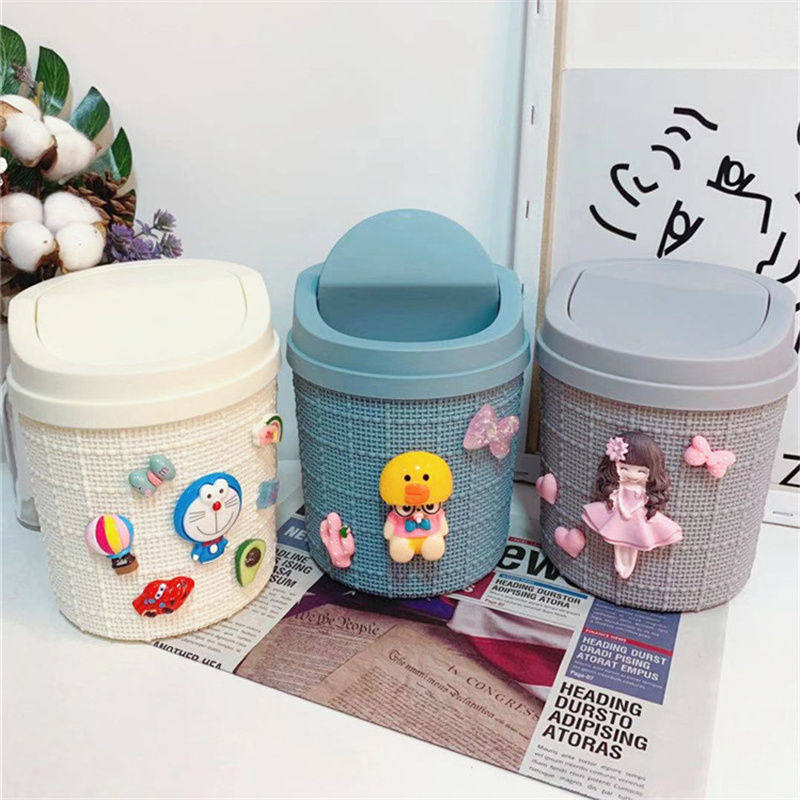 Мультяшное маленькое милое пластиковое мусорное ведро для домашнего использования, популярно в интернете
