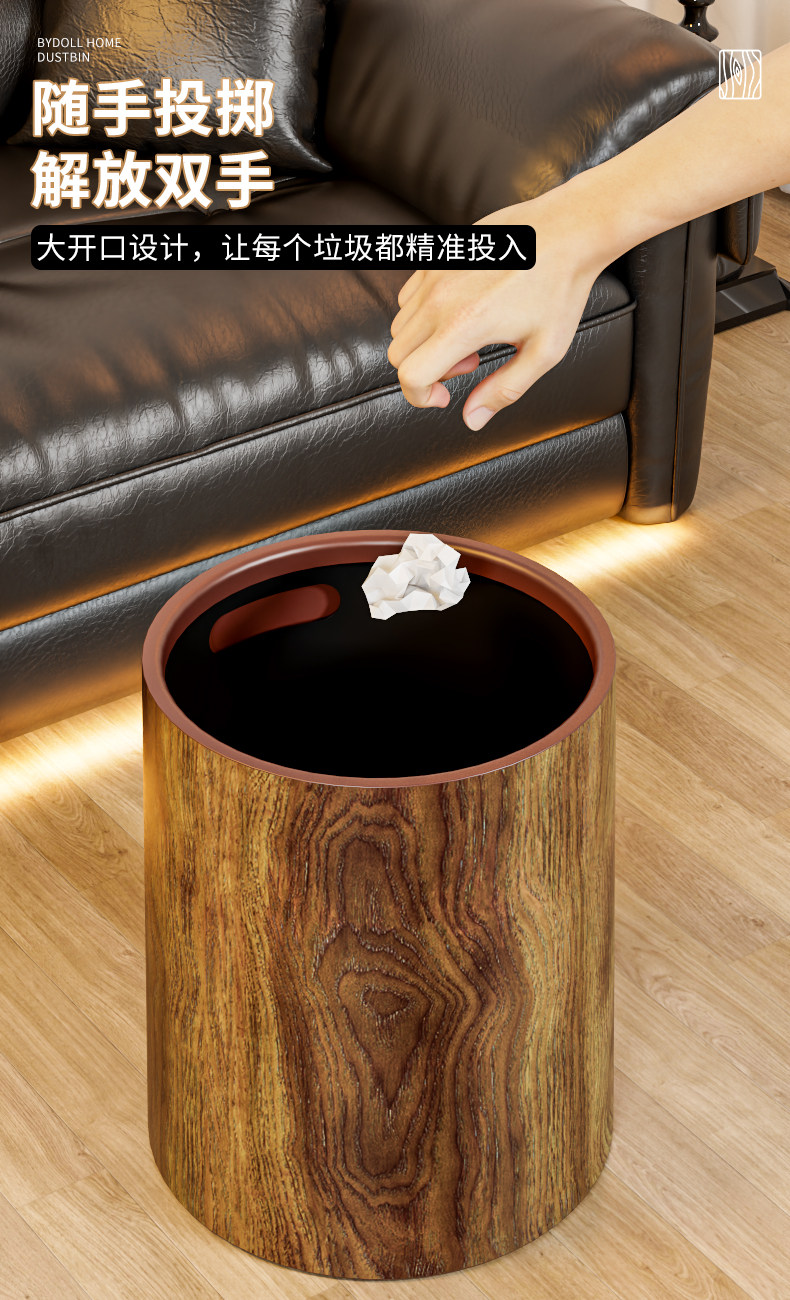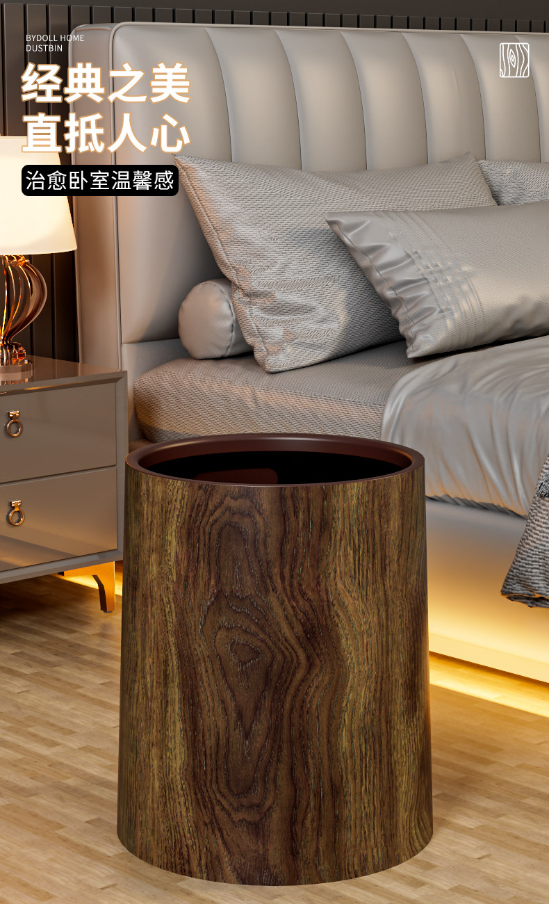 Мусорное ведро с имитацией древесины в стиле ретро, новинка 2026 года, бытовая откидная верхняя кухонная корзина для офиса в античном стиле, коммерческая корзина для бумаги в китайском стиле