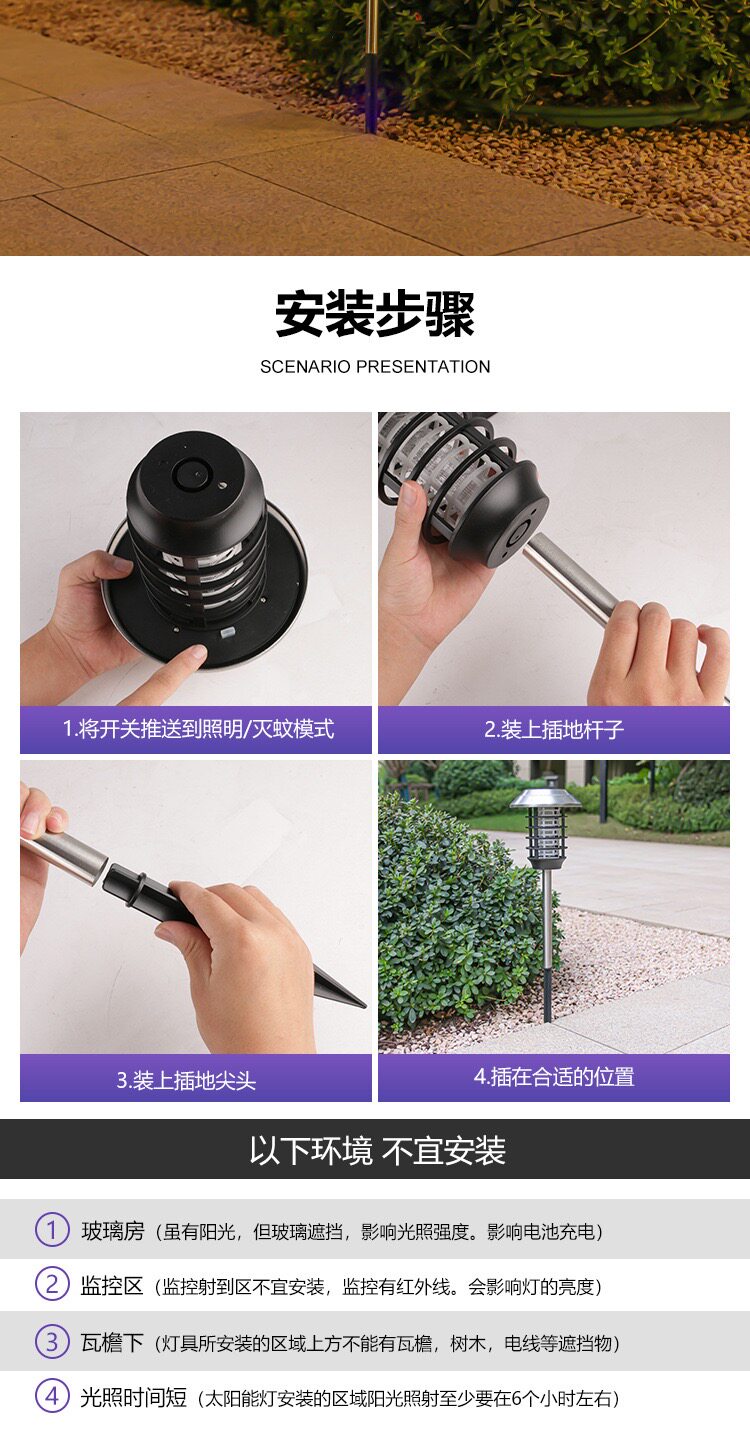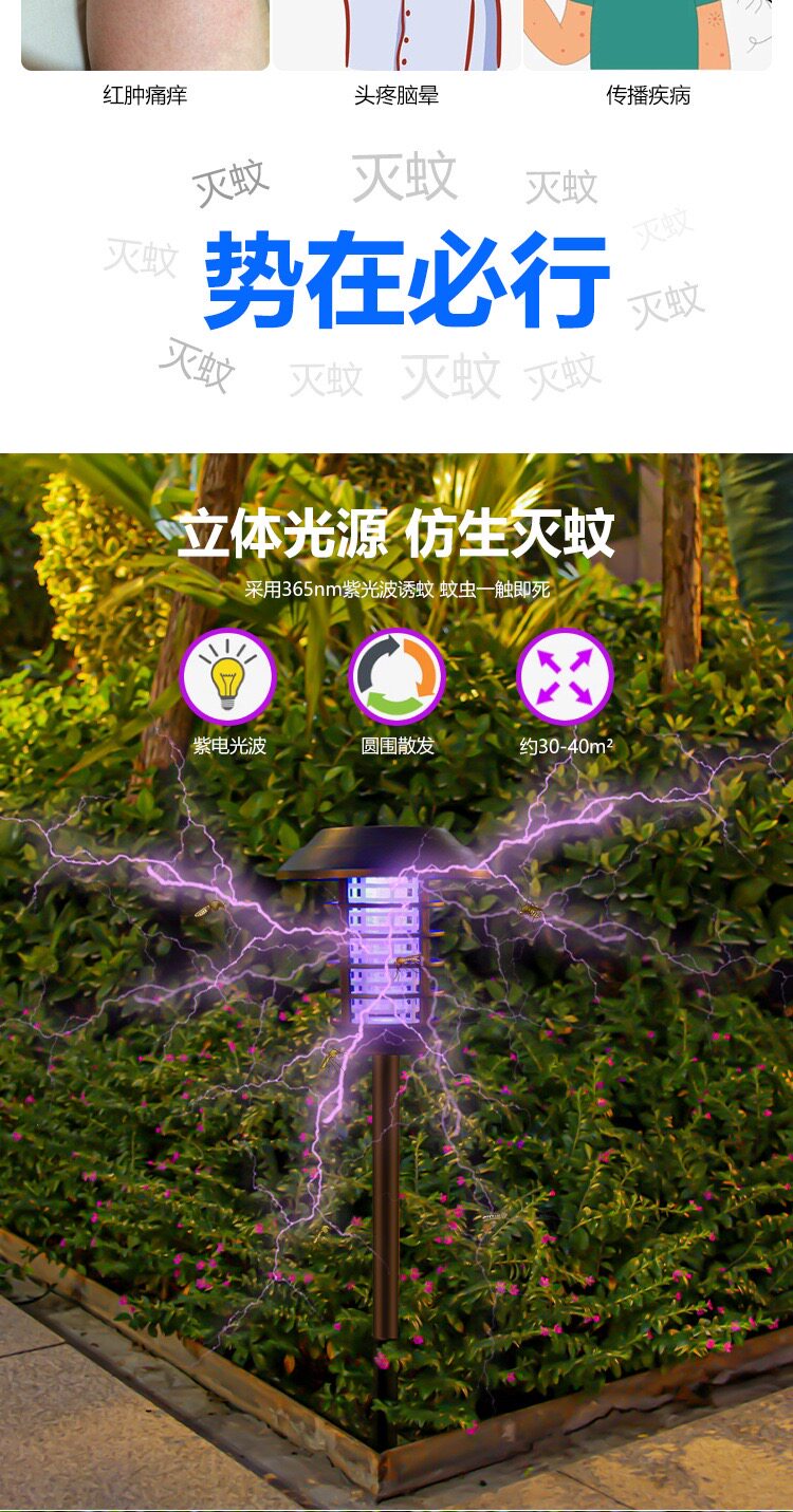 Средство от комаров на солнечной энергии, дорожная водонепроницаемая москитная лампа для беседки