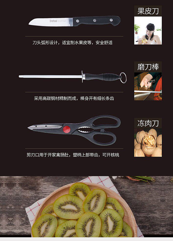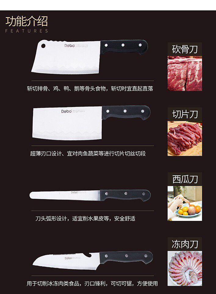 ◎ Кухонный нож подходит для разрезания ломтиков и посуды, не разрезайте кость, чтобы не повредить лезвие;
