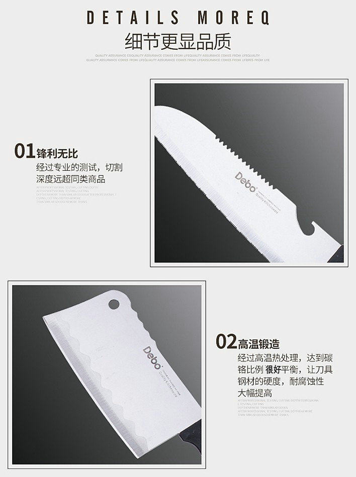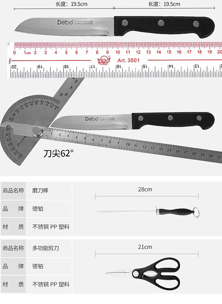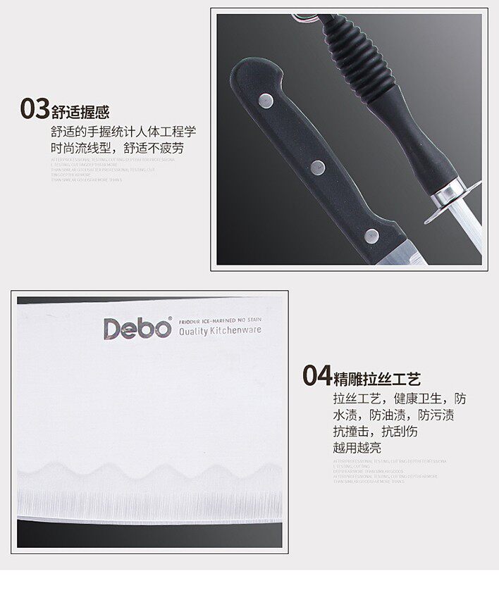 ◎ Когда нож тупым, используйте воду под углом при 15-20 градусах на шлифовальной палочке, чтобы быть острым, как новое;