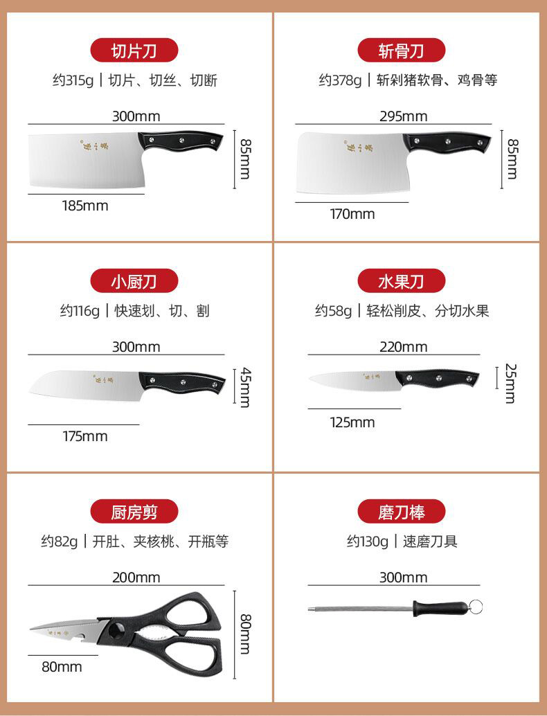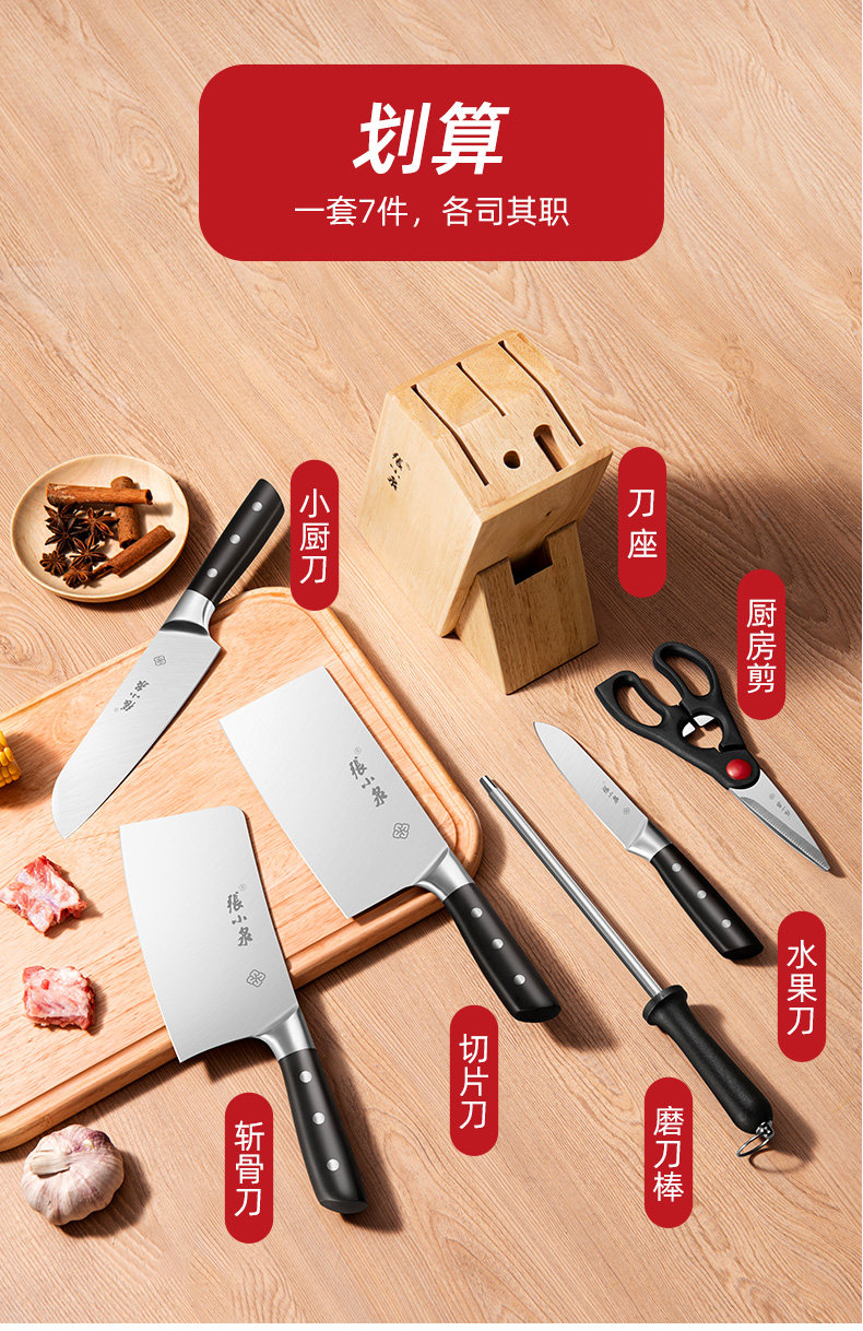 张小泉 Нож, комплект, кухонная утварь, 2 в 1, полный комплект