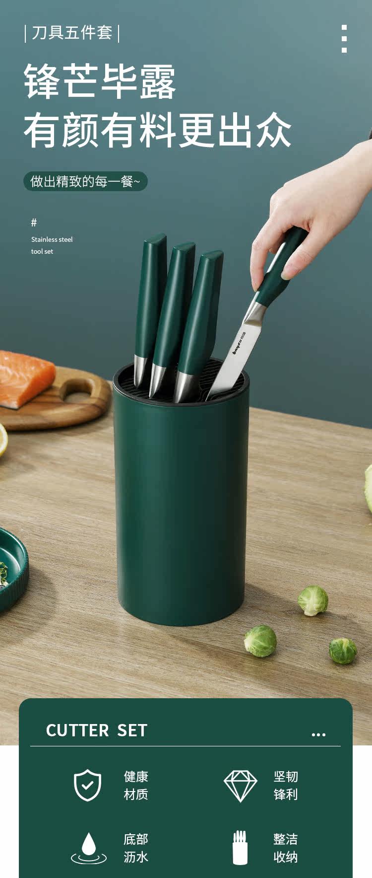 Нож, разделочная доска, комплект, кухонная утварь, 5 шт