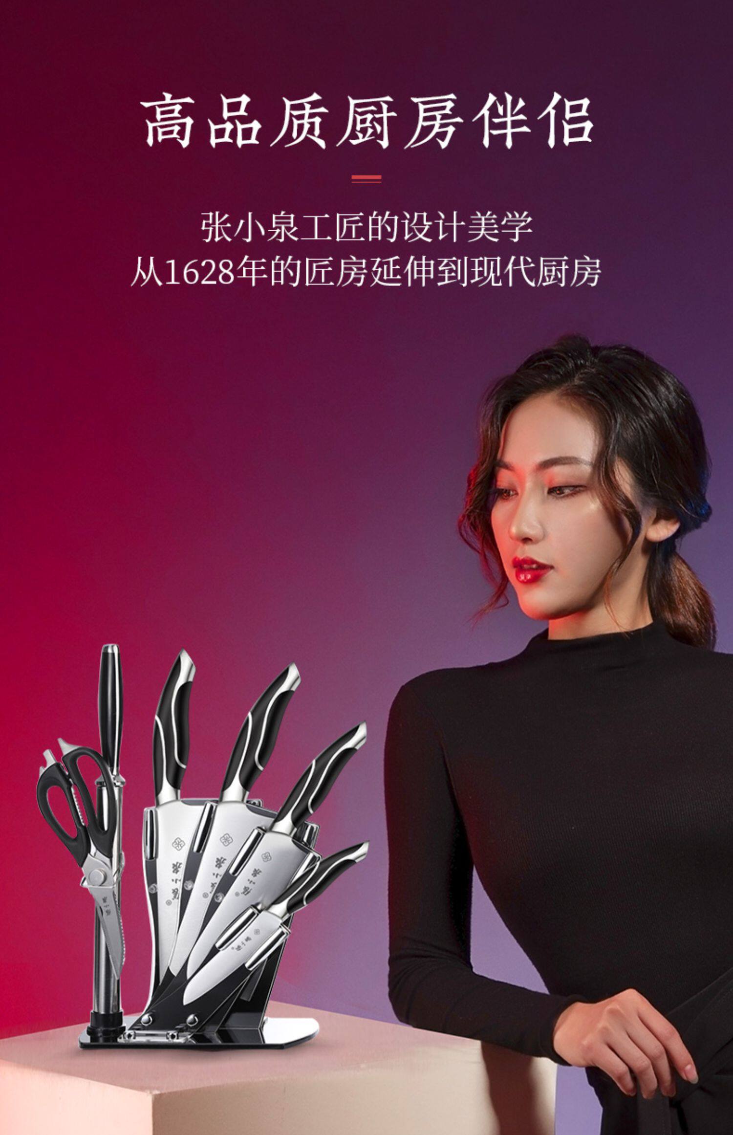 张小泉 Комплект, нож, кухонная утварь из нержавеющей стали, набор, полный комплект